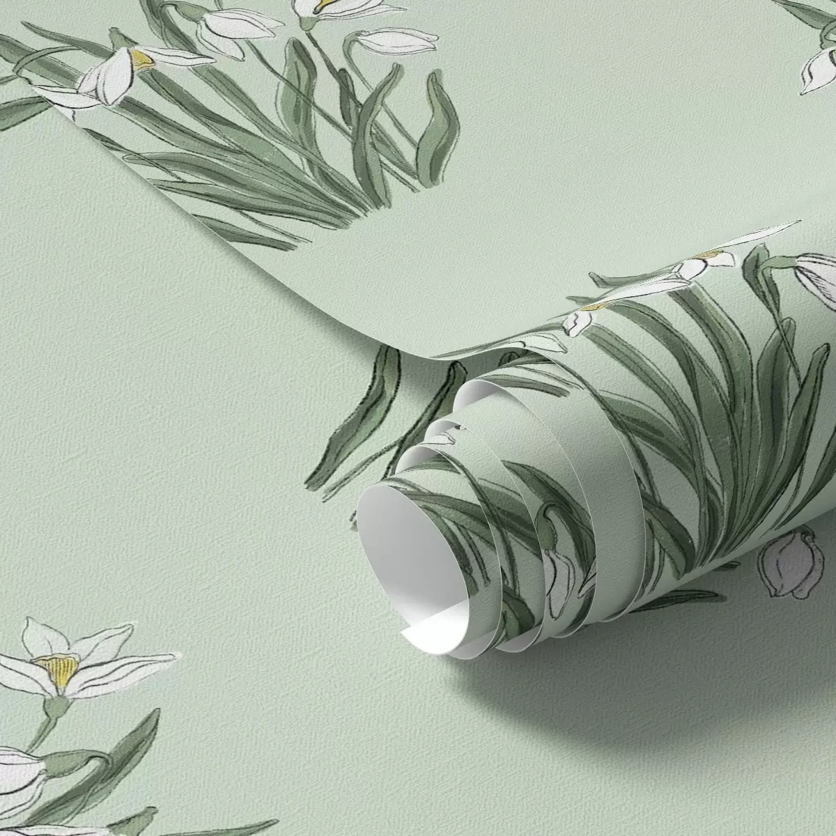 Шпалери Проліски із зеленим листям на теплому жовтому тлі Nr. a00651v3