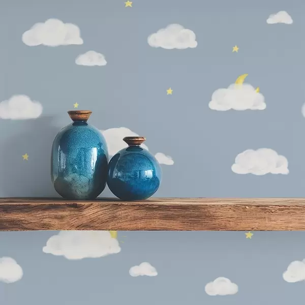 Шпалери М'які хмари, зірки і сонце на блакитному тлі Nr. a00652