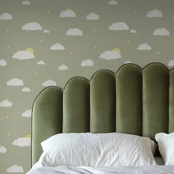 Шпалери М'які хмари, зірки і сонце на зеленувато-сірому тлі Nr. a00652v1