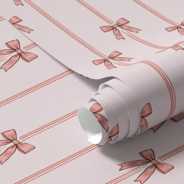 Шпалери Вертикальні стрічки з бантиками, пудрово-рожевий фон Nr. a00653v2
