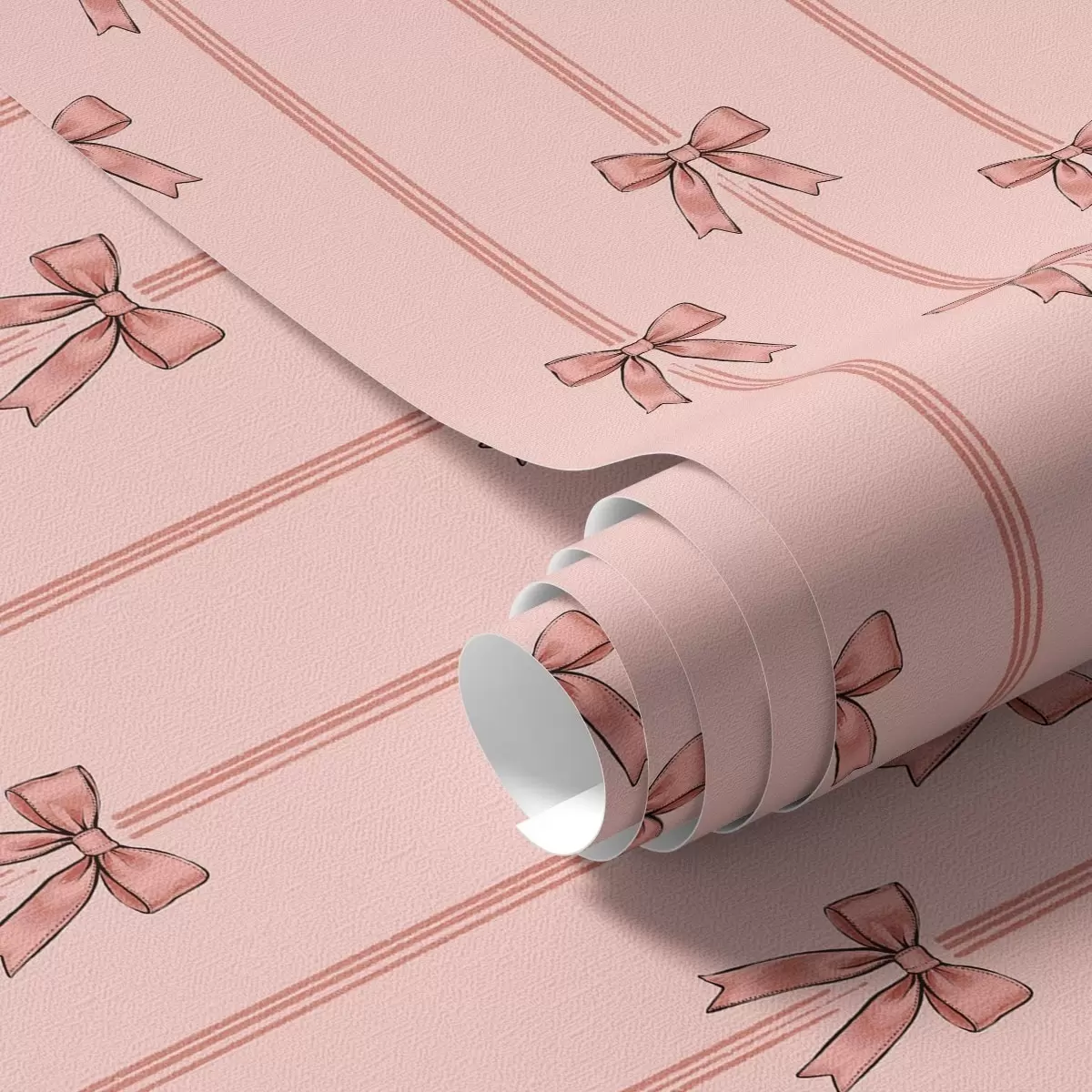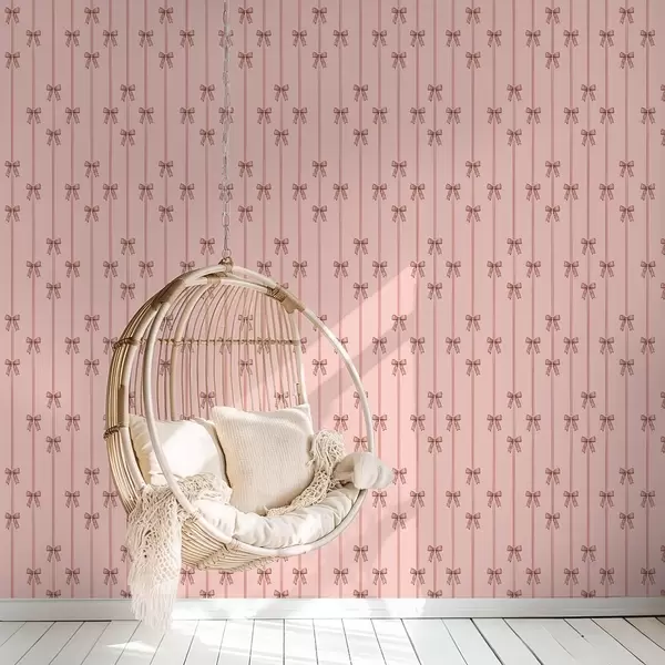 Шпалери Вертикальні стрічки з бантами, коралово-рожевий фон Nr. a00653v3