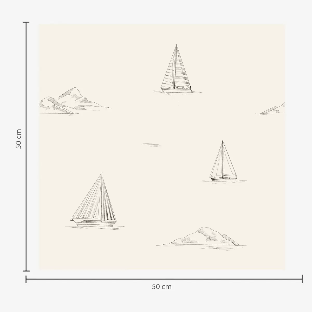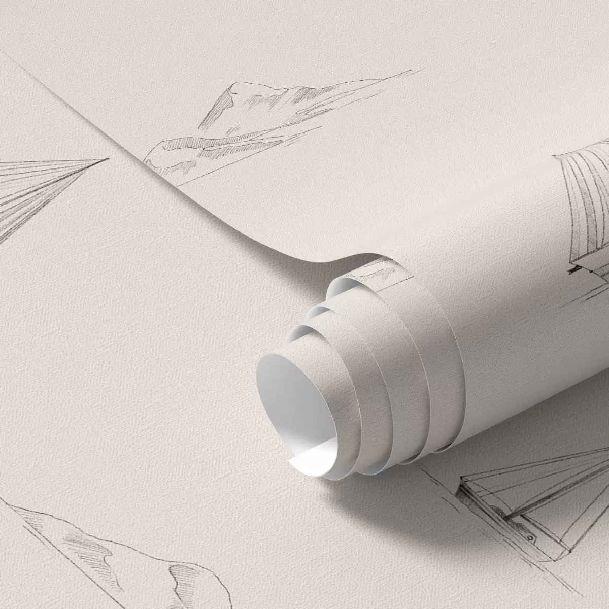 Шпалери Ескізи яхт і островів, теплий кремовий фон Nr. a00654v1