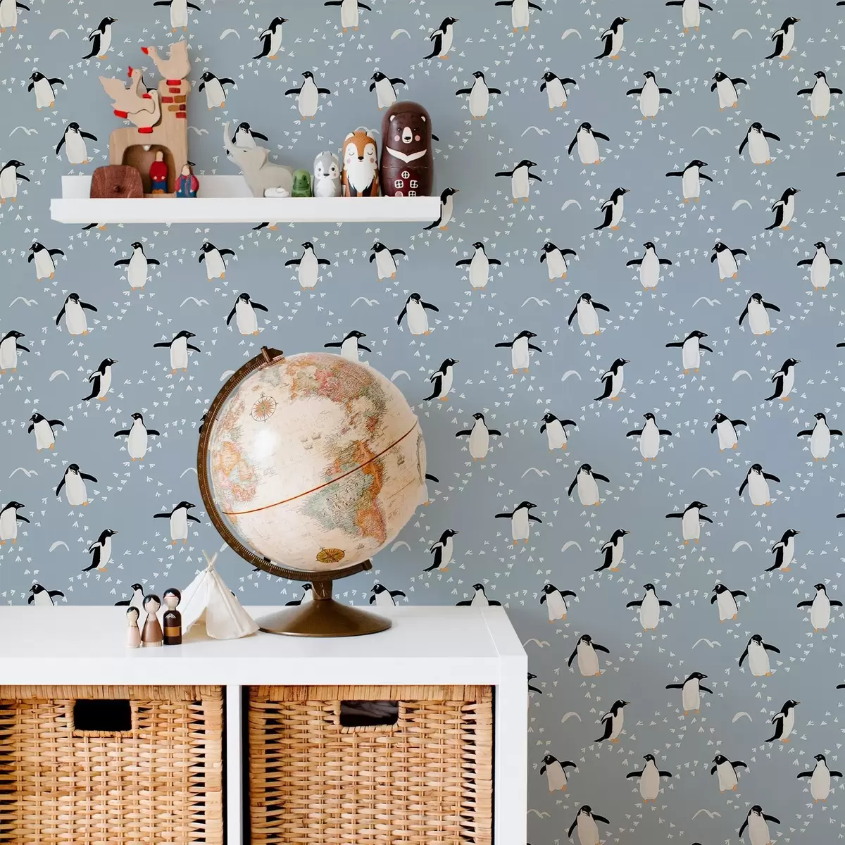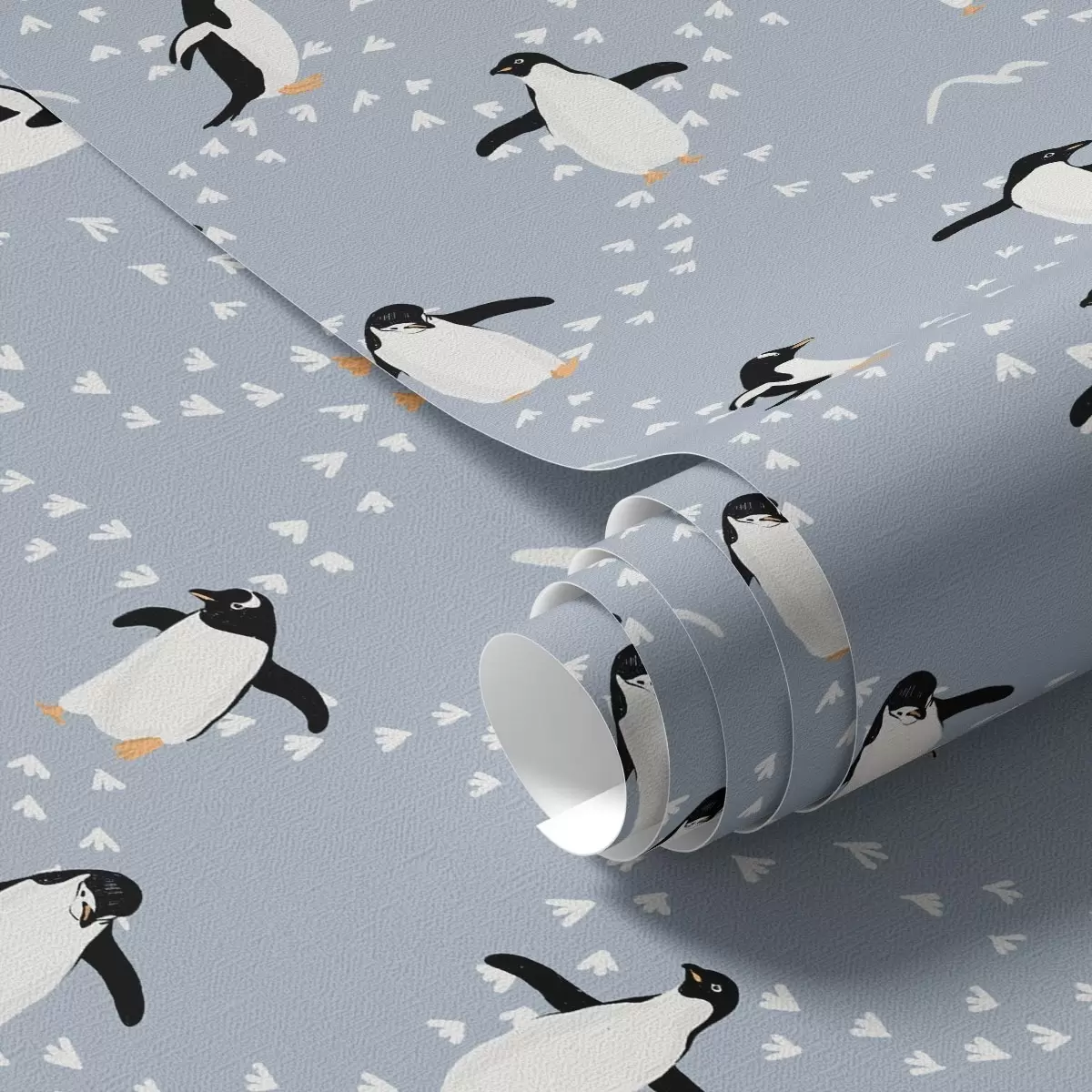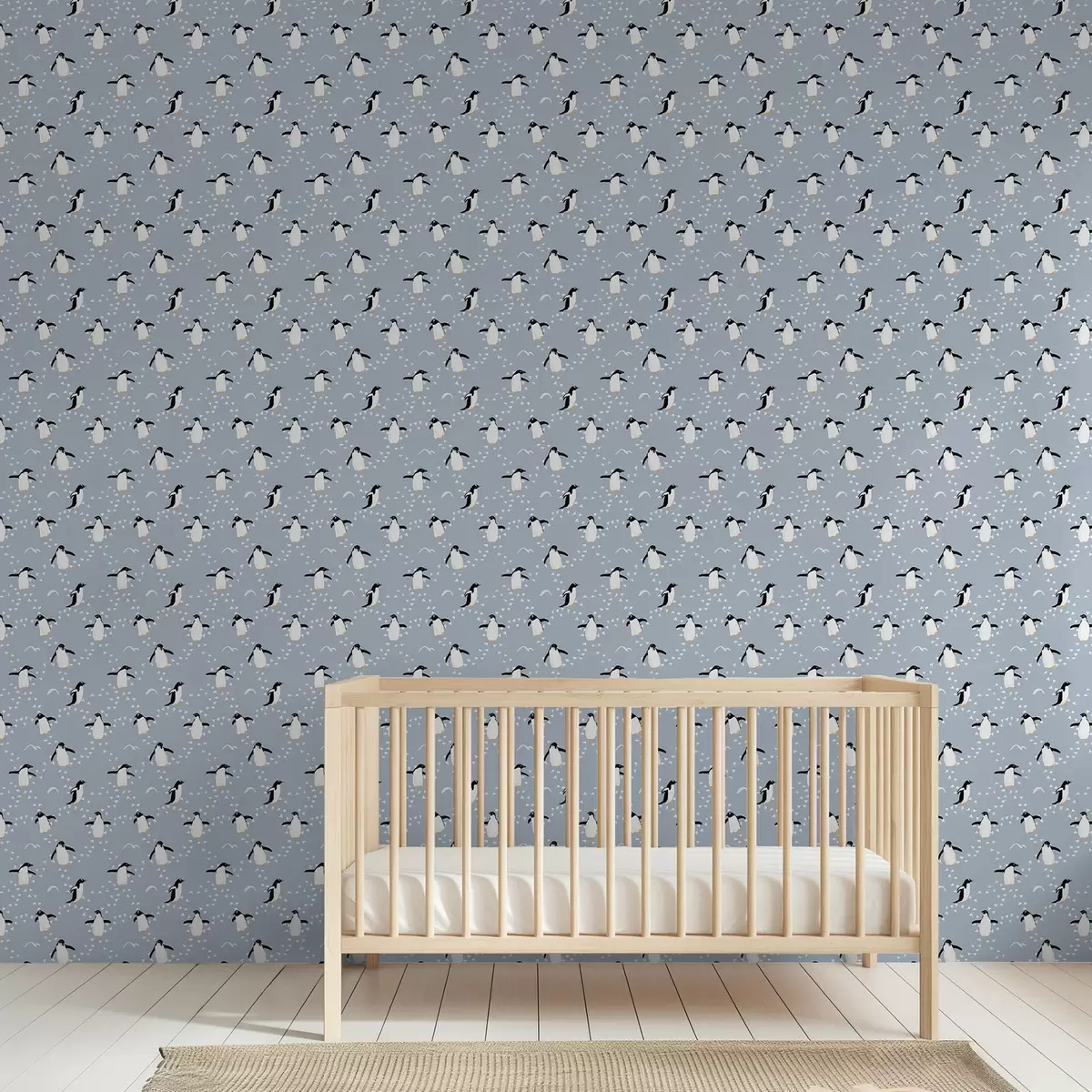 Шпалери Пінгвіни на сіро-блакитному тлі зі слідами Nr. a00655