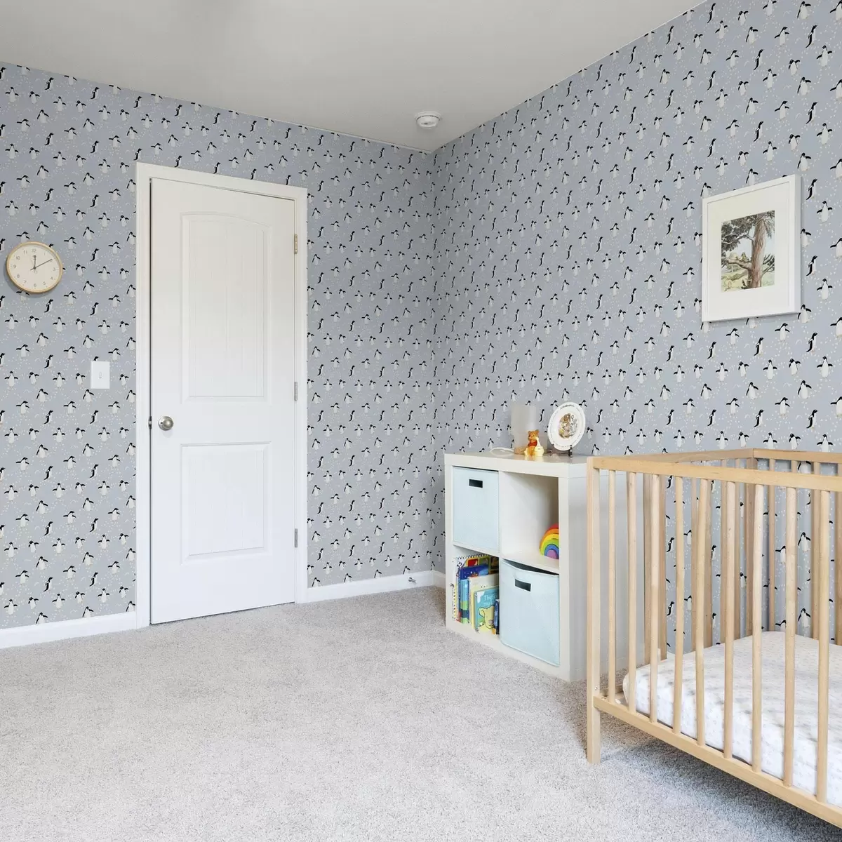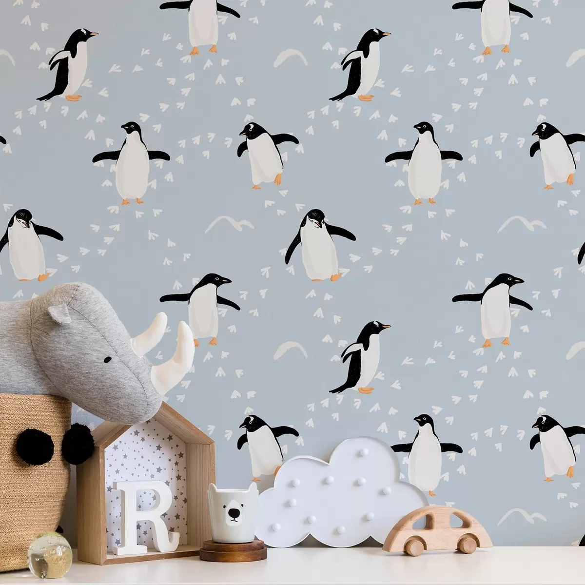Шпалери Пінгвіни на світло-блакитному тлі, ритм слідів Nr. a00655v2