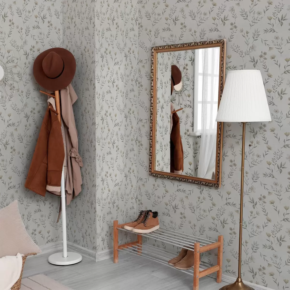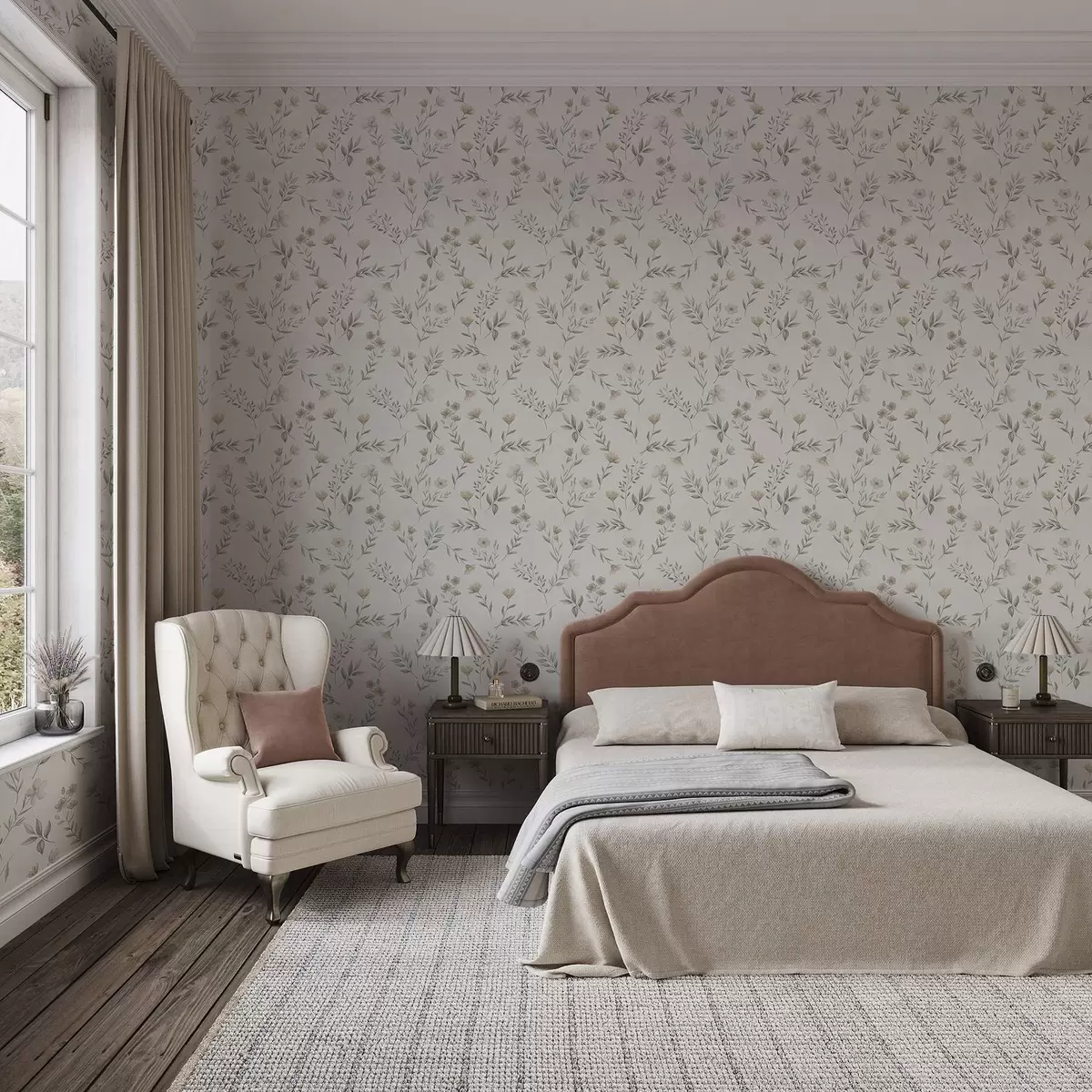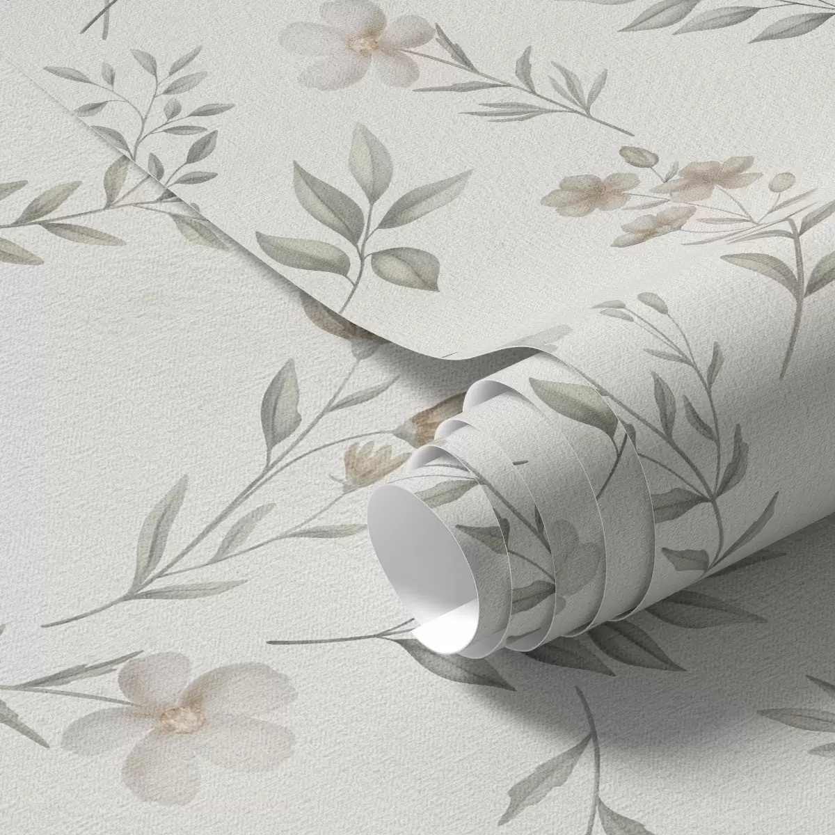Шпалери Невеликі акварельні гілочки та квіти на світлому тлі Nr. a00665