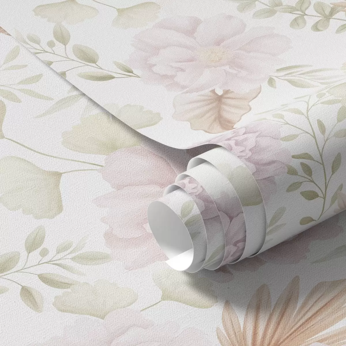 Шпалери М'які пастельні півонії та листя на білому тлі Nr. a00669