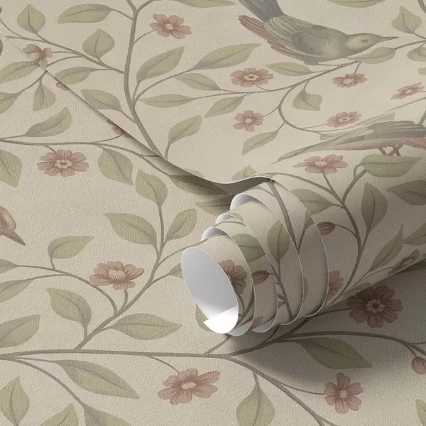 Шпалери Птахи на квітучих гілках, теплий бежевий фон Nr. a00670