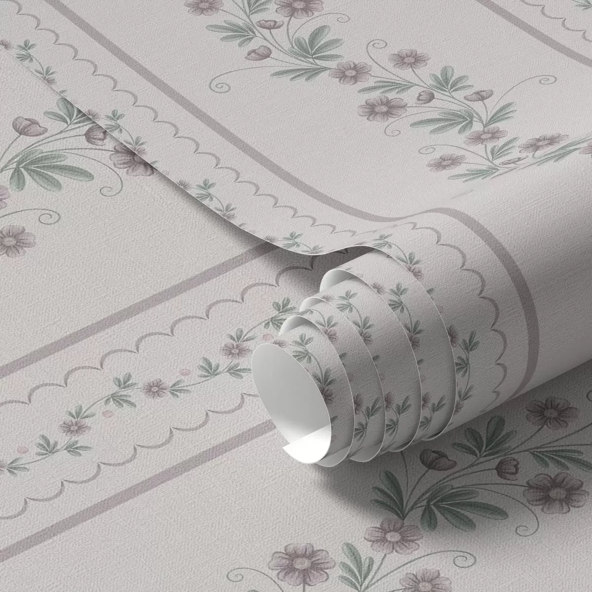 Шпалери Ніжні смужки з квітами лаванди, вінтаж Nr. a00671