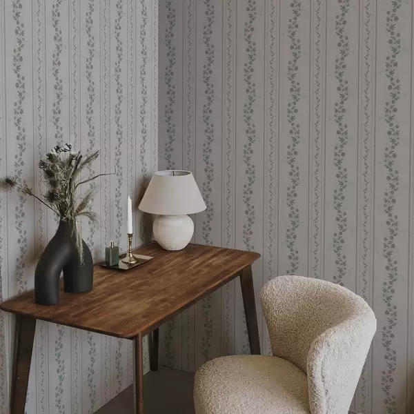 Шпалери Ніжні смужки з квітами лаванди, вінтаж Nr. a00671