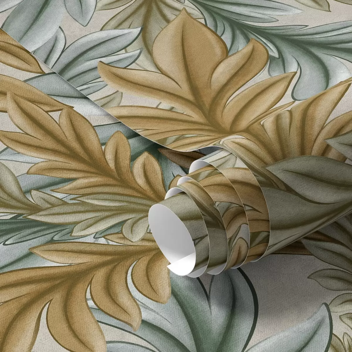 Шпалери Декоративне листя в теплій охристо-зеленій палітрі Nr. a00673