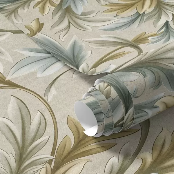 Шпалери Об'ємні листя в пастельних відтінках зеленого і бежевого кольорів Nr. a00674