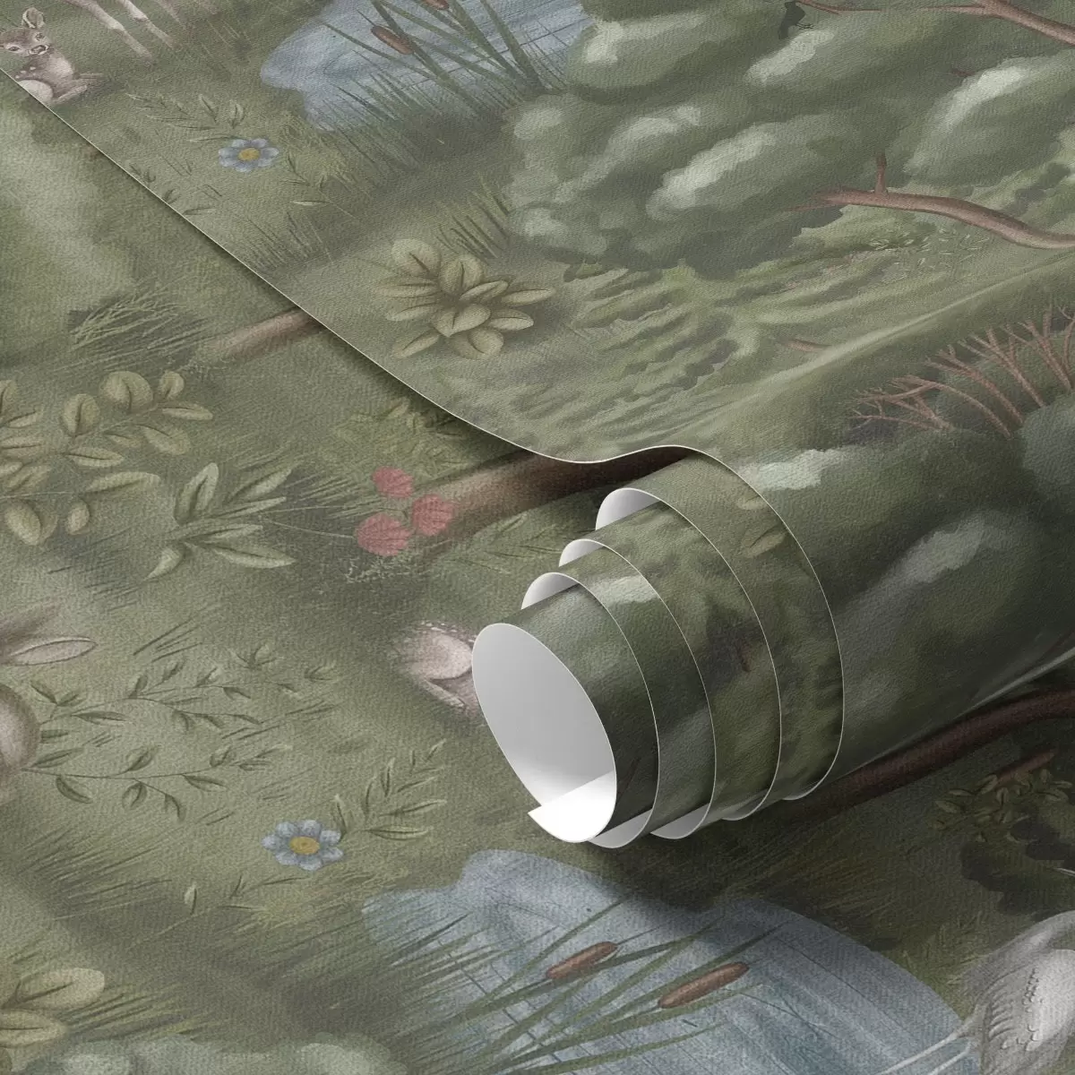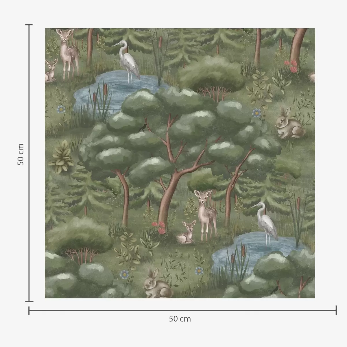 Шпалери Лісова галявина з оленятами, кроликами та чаплями Nr. a00680