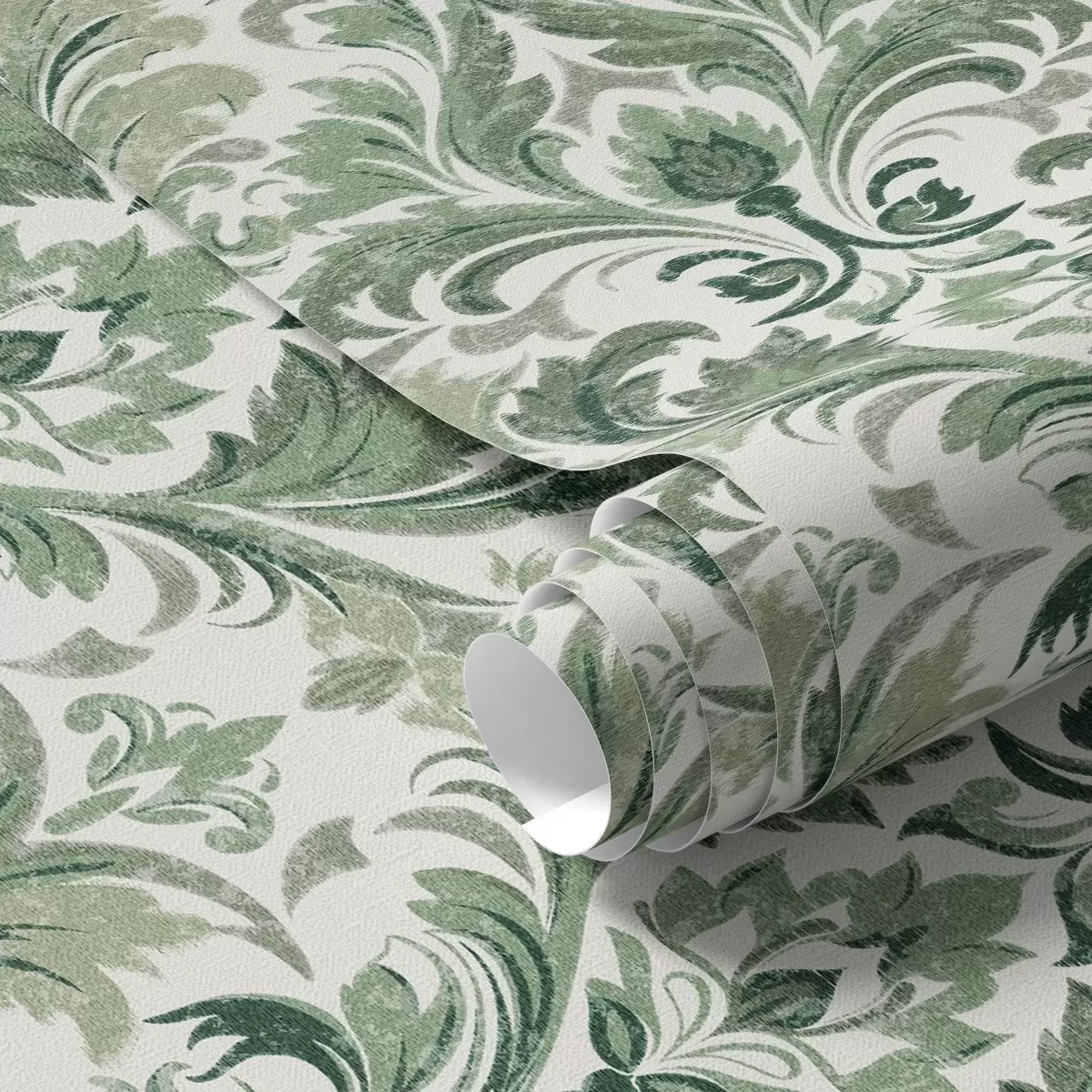 Шпалери Зелений дамаск з рельєфною текстурою на світлому тлі Nr. a00692
