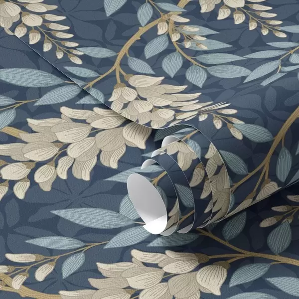 Шпалери Гліцинія з блакитним листям на темно-синьому тлі Nr. a00694v2