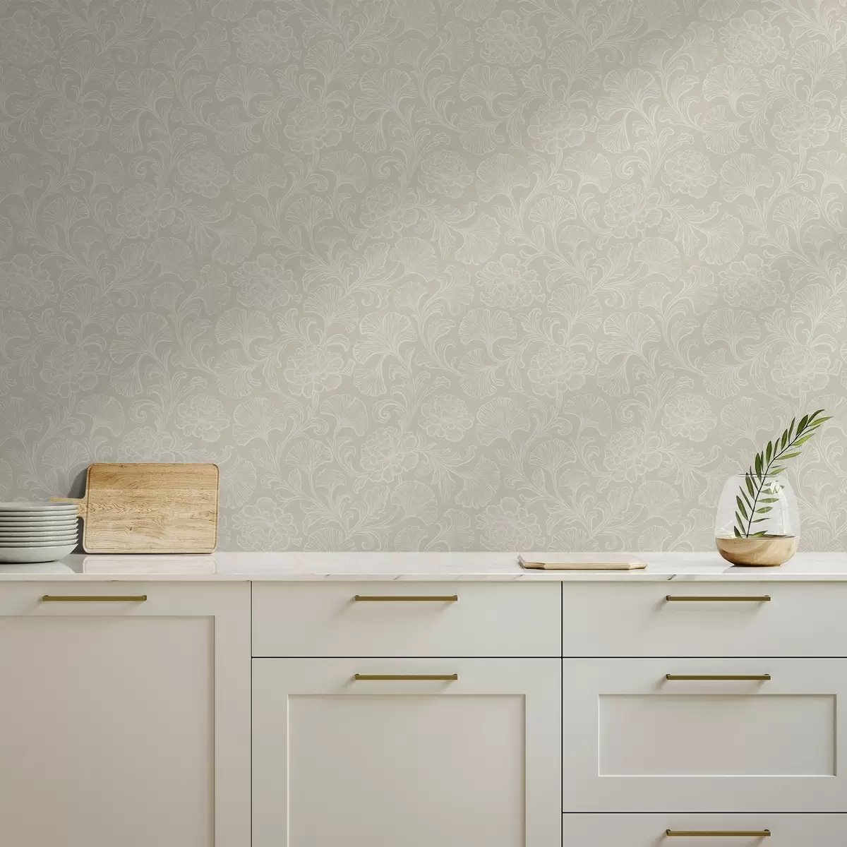 Шпалери Світловий візерунок з гінкго і півоніями Nr. a00700