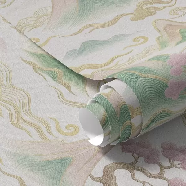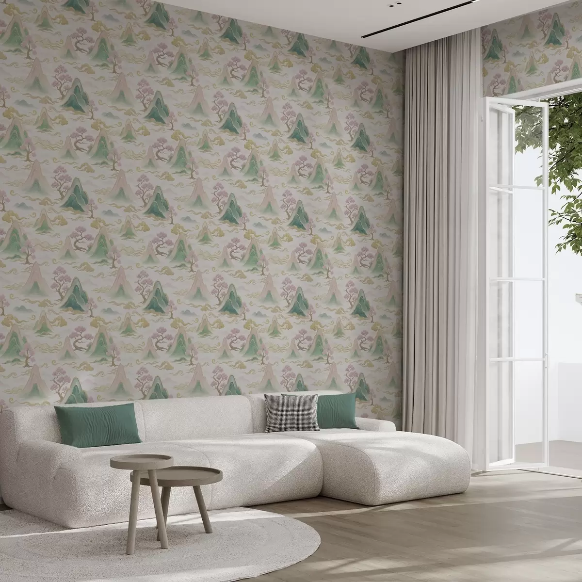 Шпалери Гори, хмари та сосни в східному декоративному стилі Nr. a00703