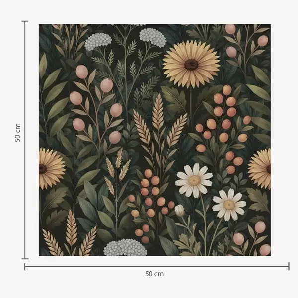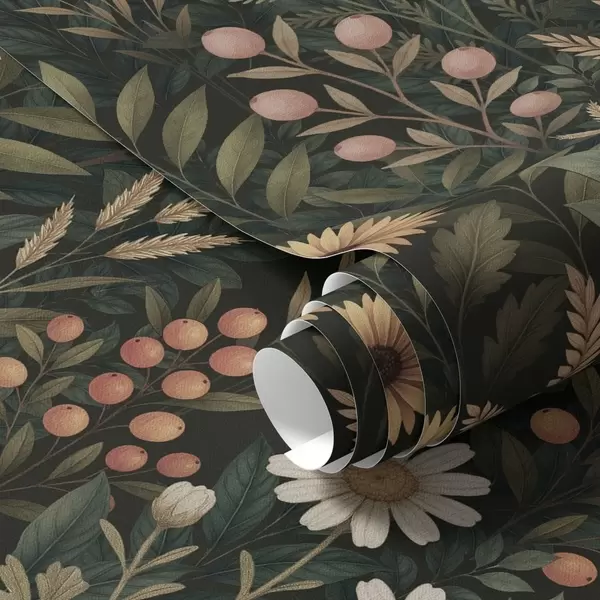 Шпалери Польові квіти та ягоди на темному тлі, природний орнамент Nr. a00707