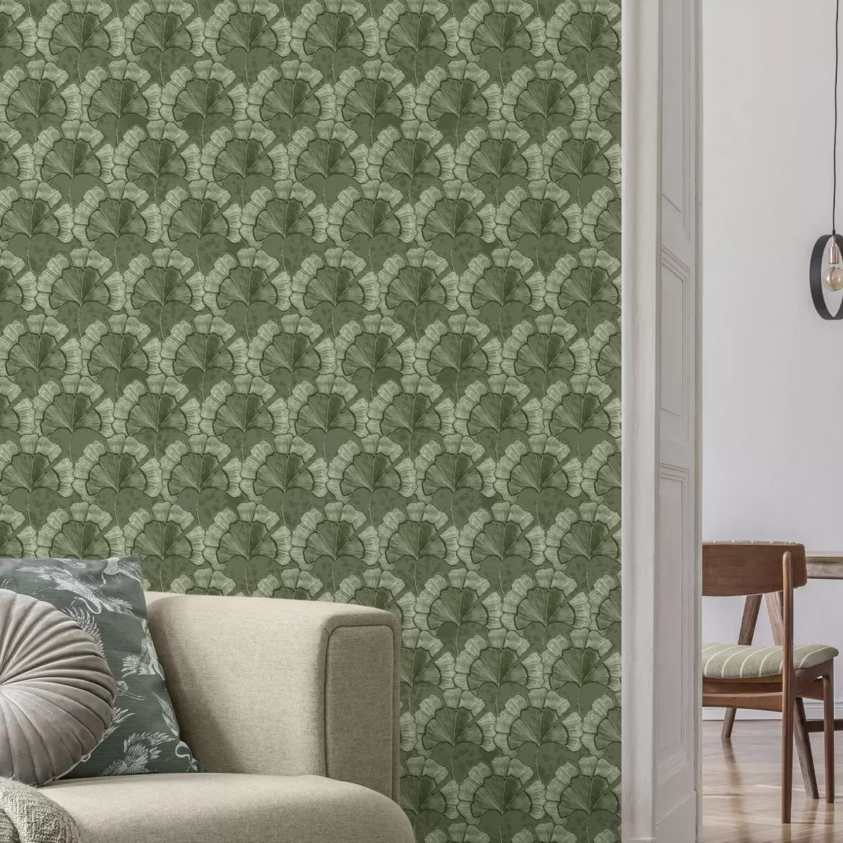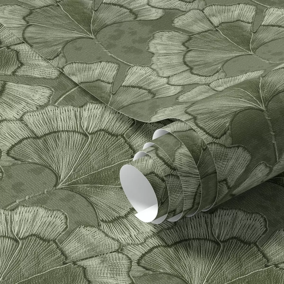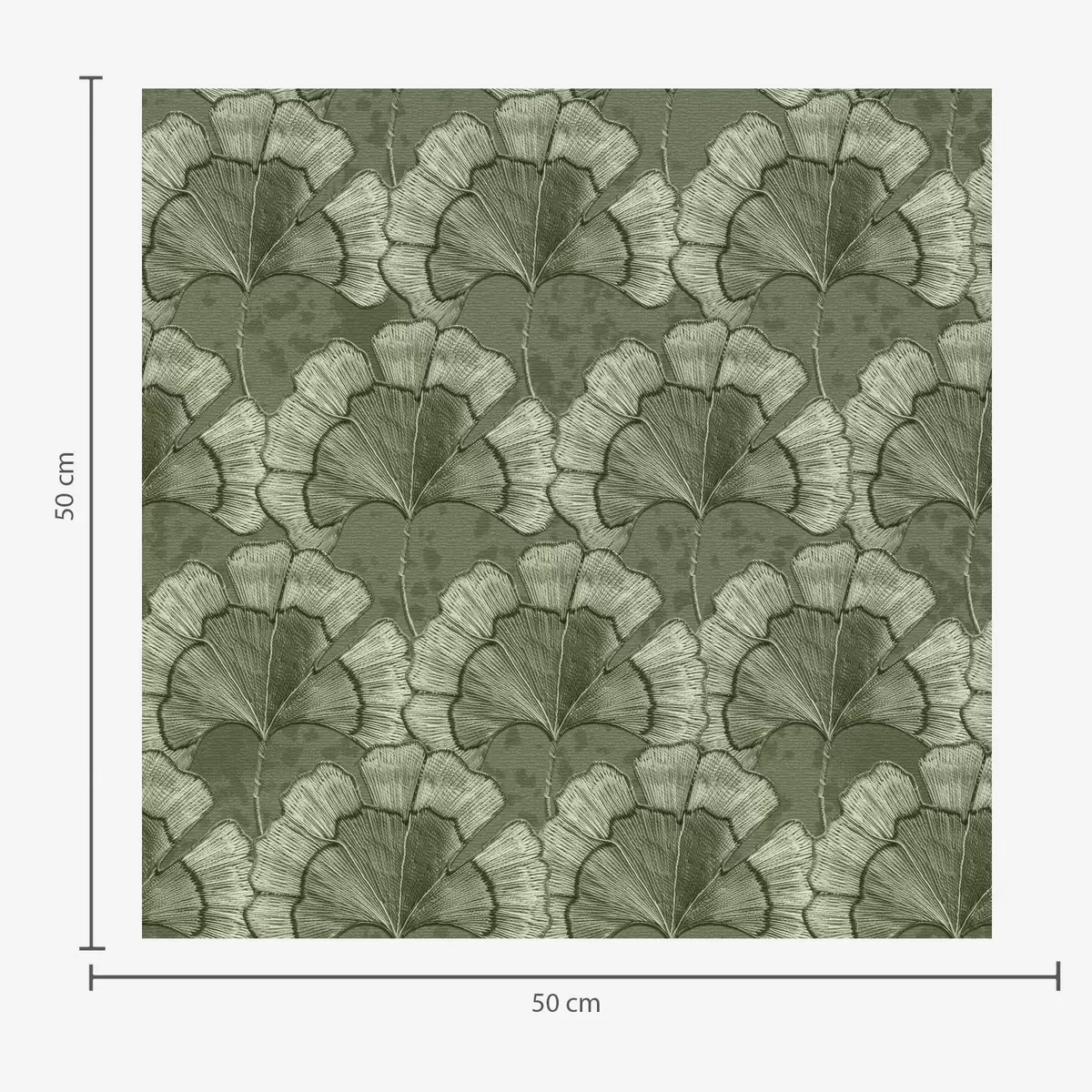 Шпалери Графічний візерунок з гінкго в прохолодній зеленій палітрі Nr. a00709