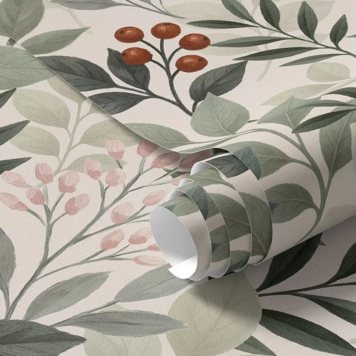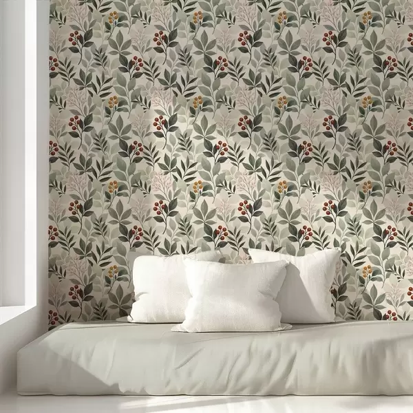 Шпалери Листя з ягодами, світлий фон Nr. a00713
