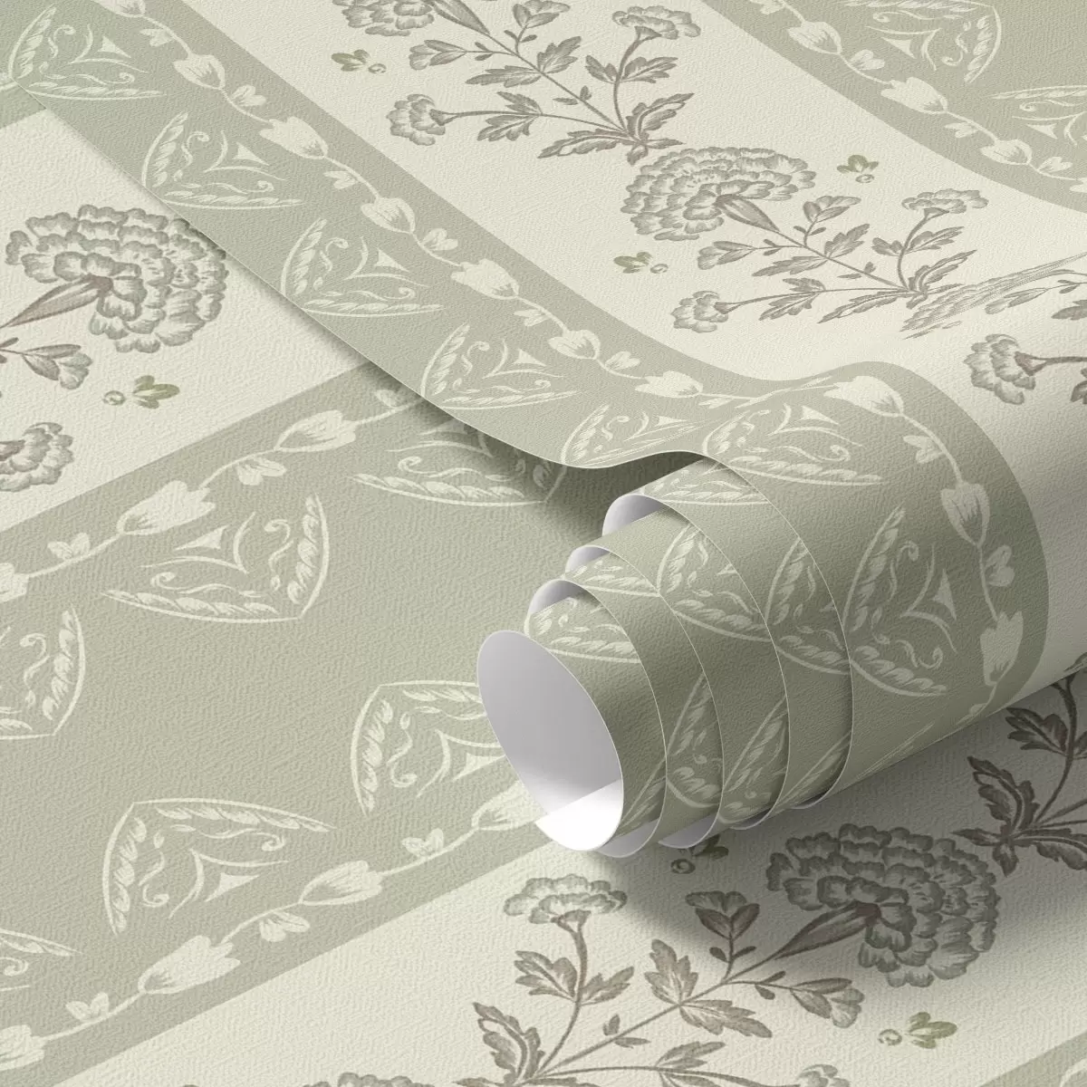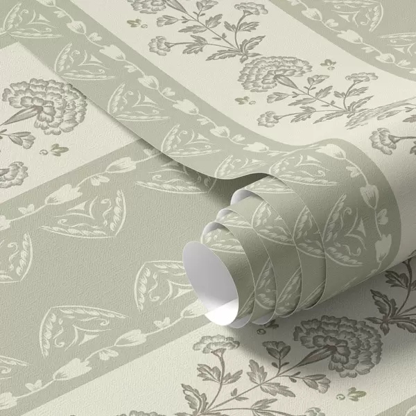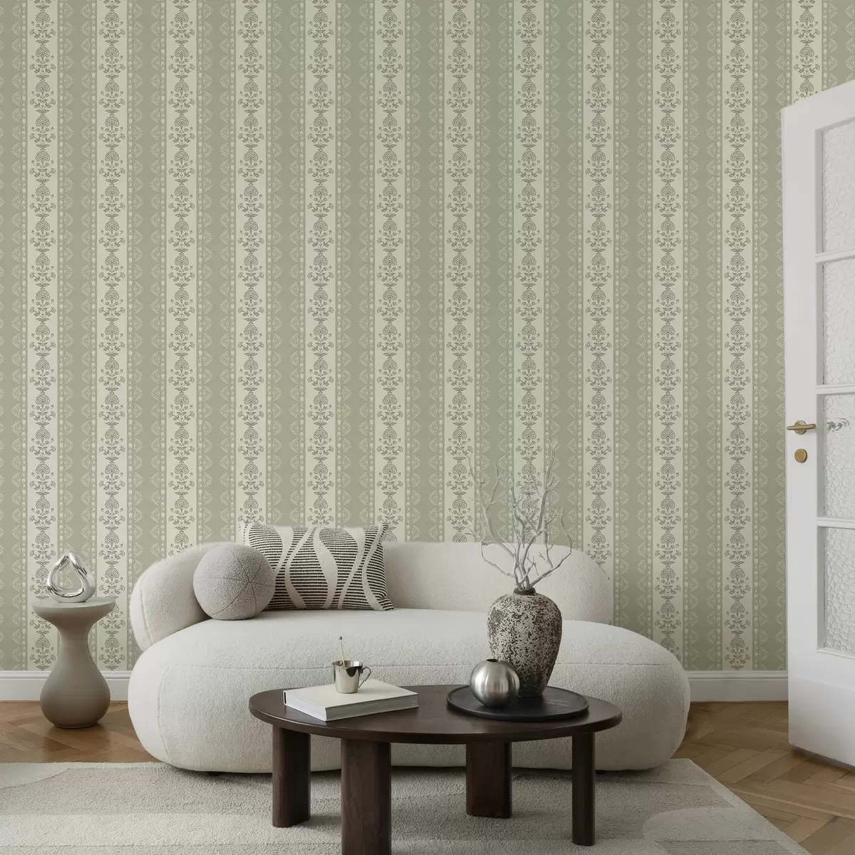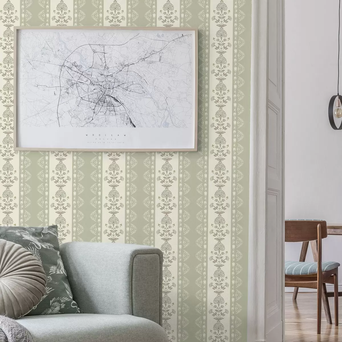Шпалери Смугастий орнамент з квітковими колонами в салатових тонах Nr. a00719