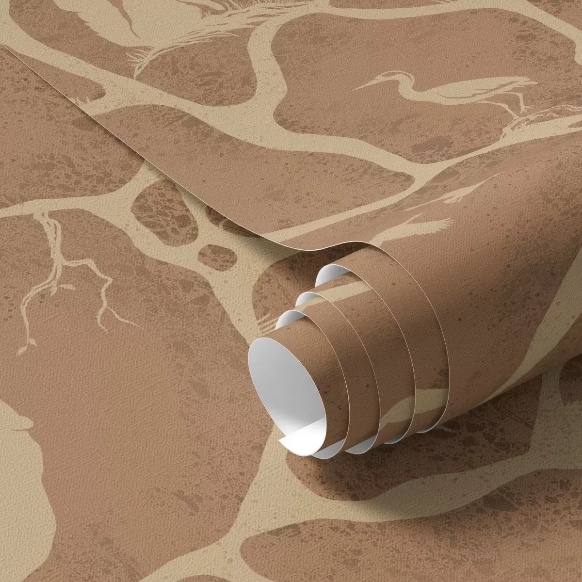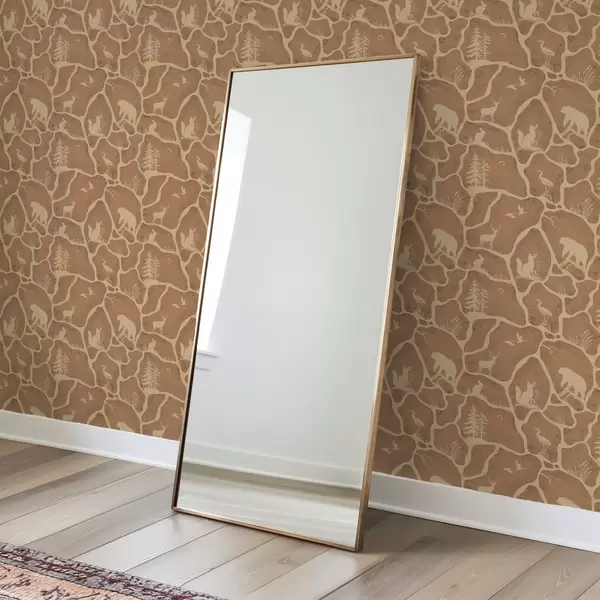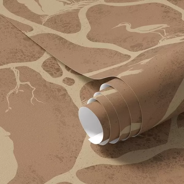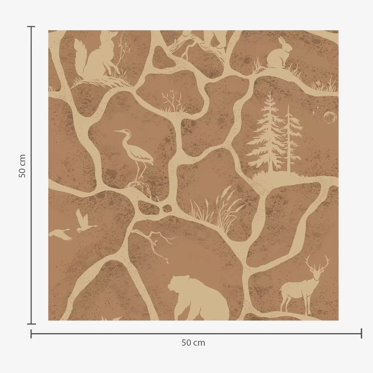 Шпалери Силуети тварин і дерев у природному ландшафті з текстурою каменю Nr. a00727