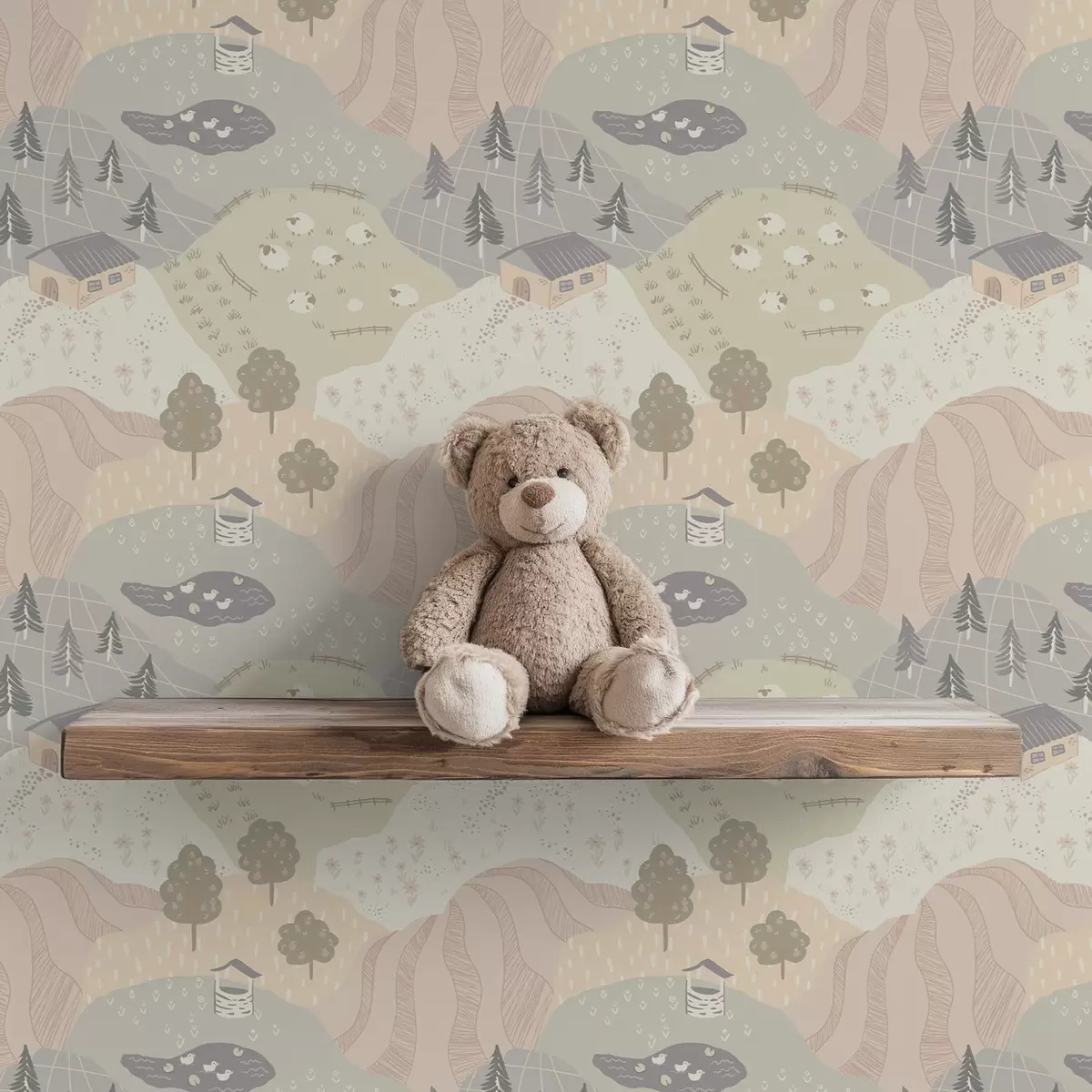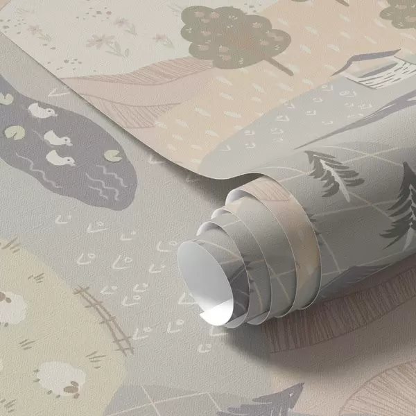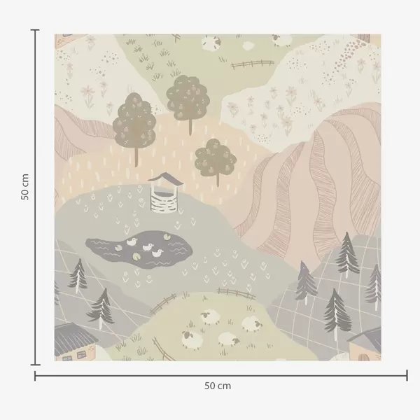 Шпалери Казкова сільська місцевість з деревами, гусьми та вівцями Nr. a00728