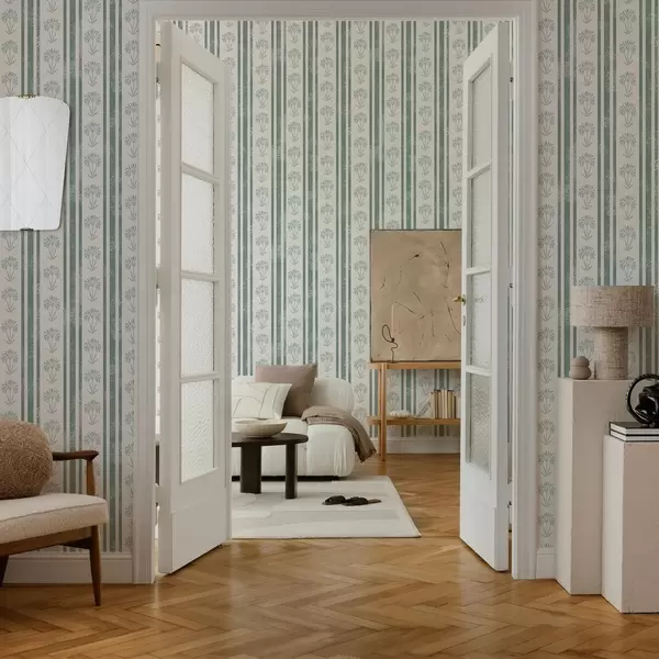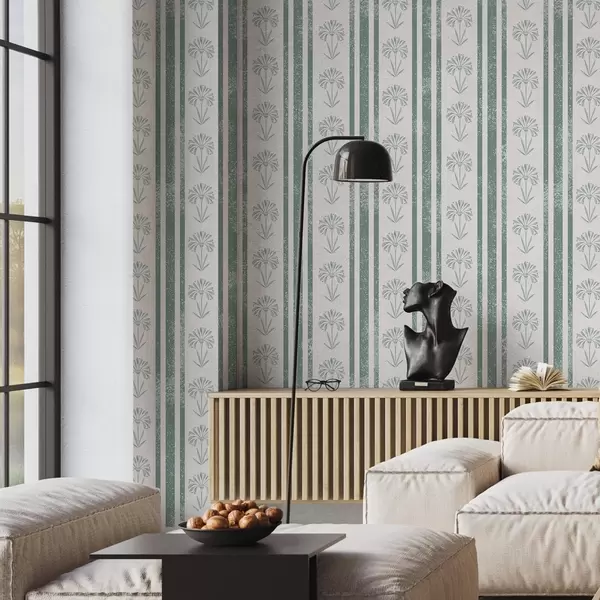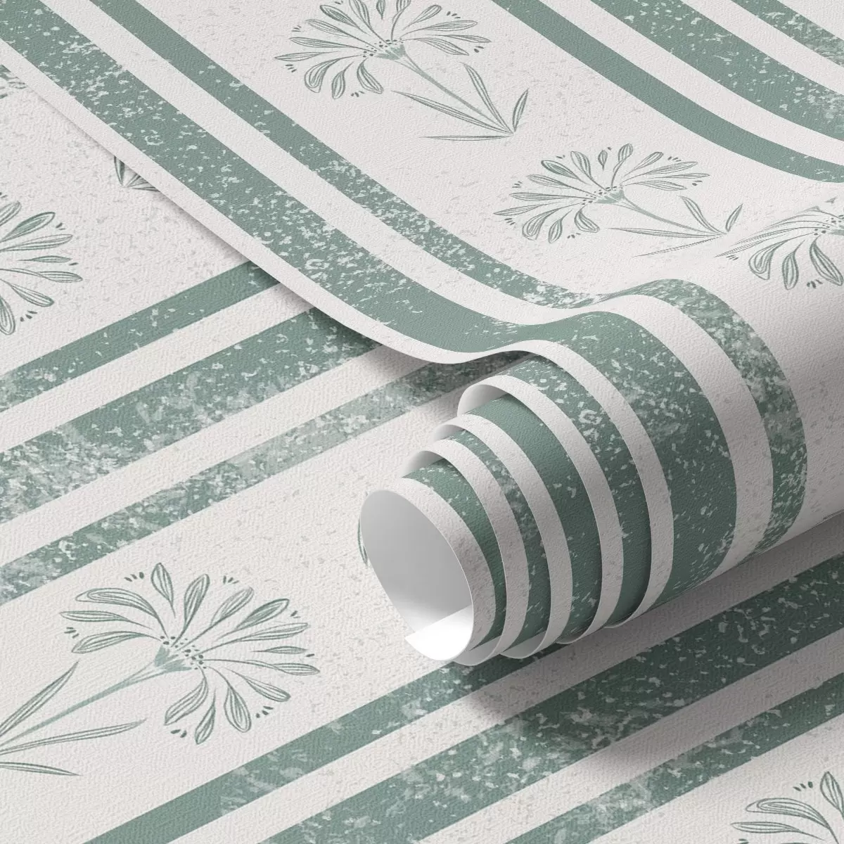 Шпалери Стрічковий візерунок з квітами в зелених відтінках Nr. a00732