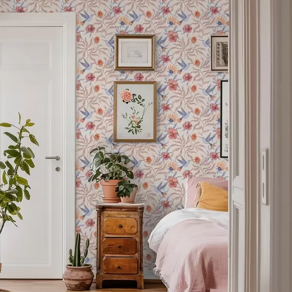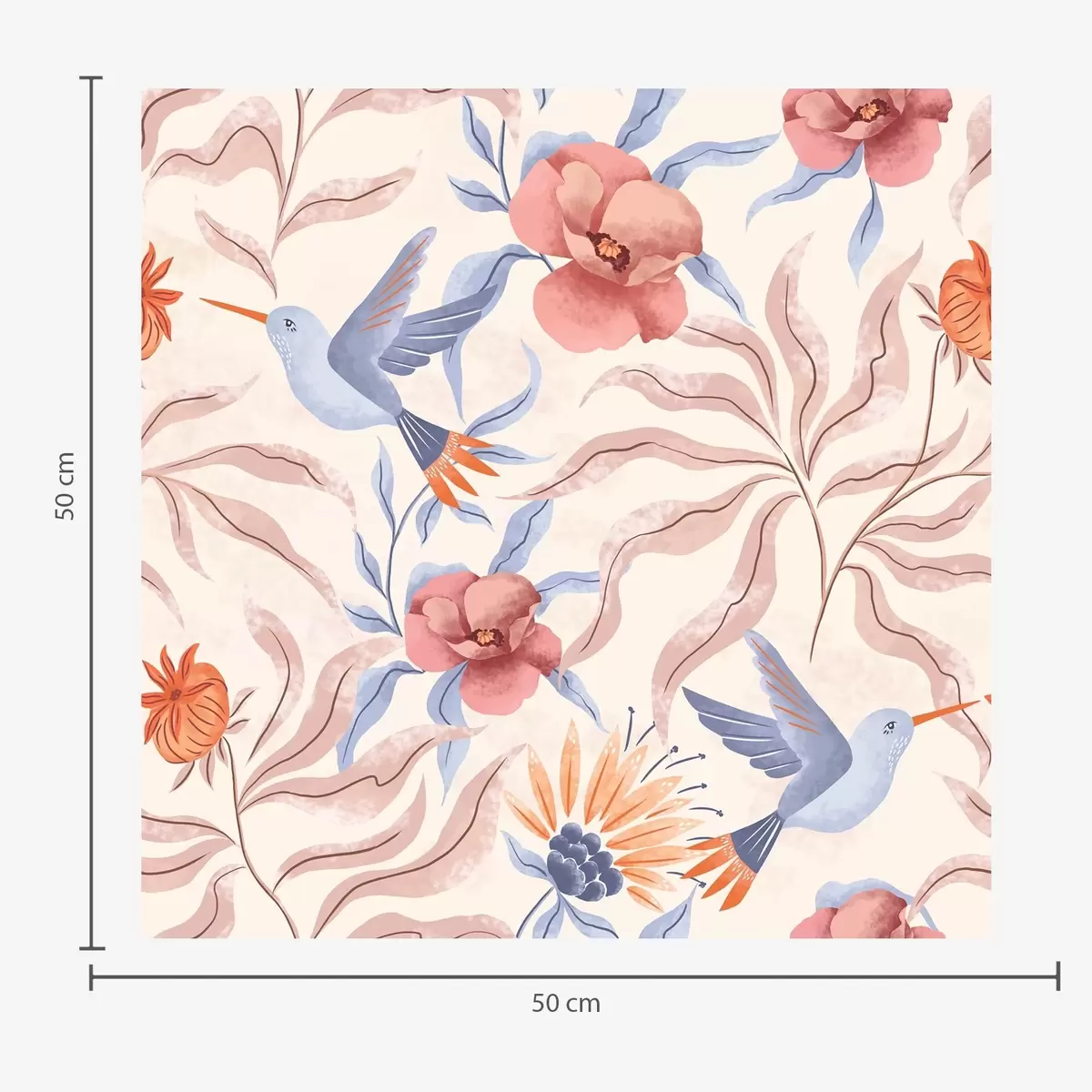 Шпалери Колібрі серед великих квітів у рожевих і блакитних тонах Nr. a00733