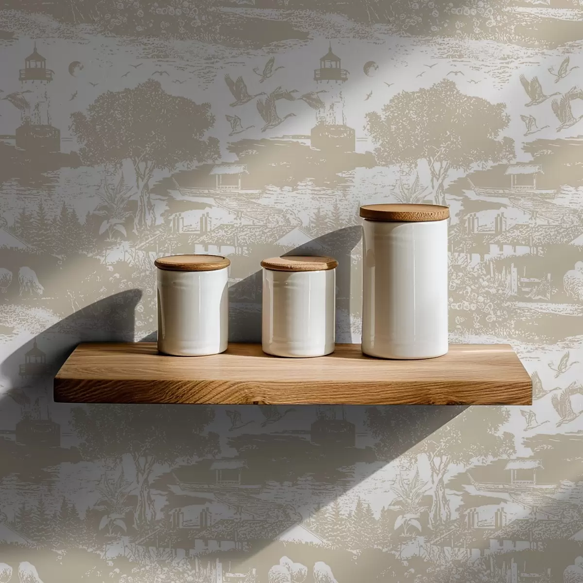 Шпалери Сцена з маяком, деревами та будинками в сієні Nr. a00739
