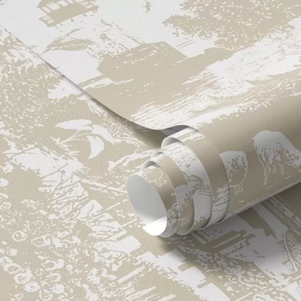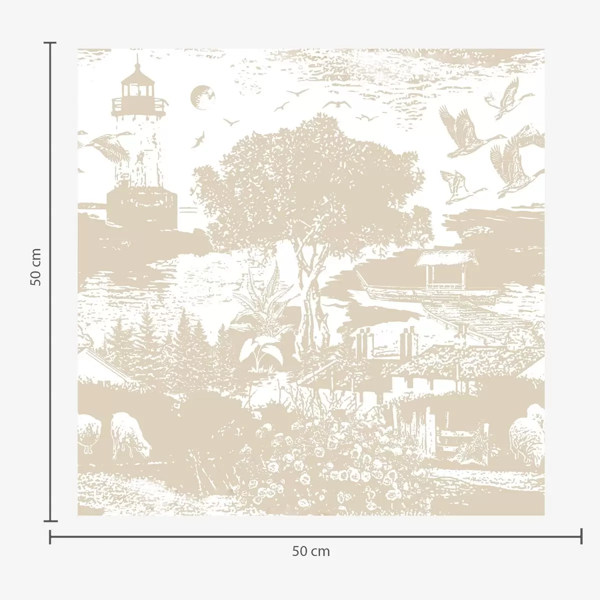 Шпалери Сцена з маяком, деревами та будинками в сієні Nr. a00739