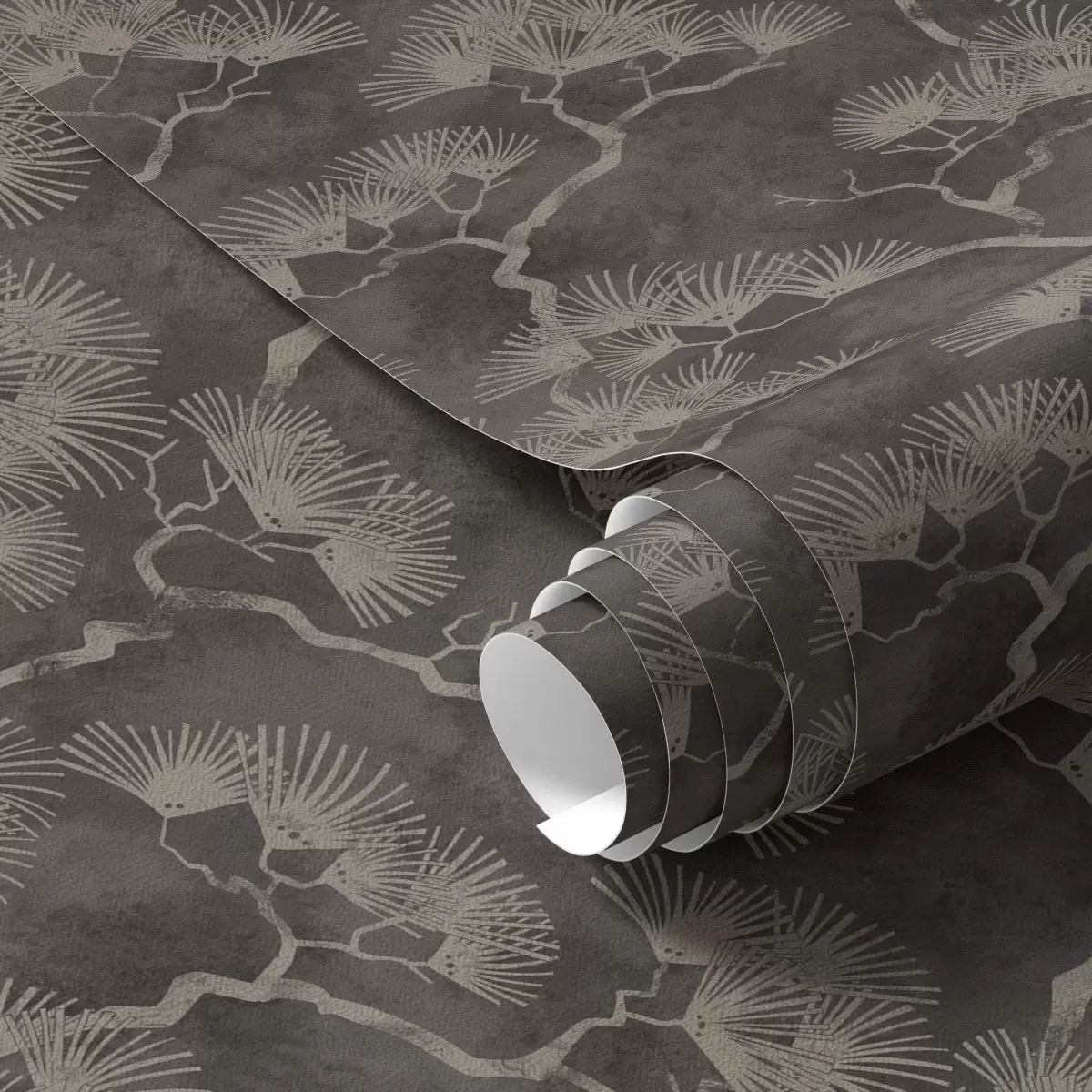 Шпалери Силуети сосен на темному тлі, туманна текстура Nr. a00742
