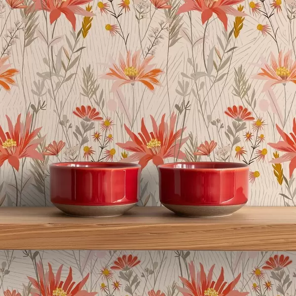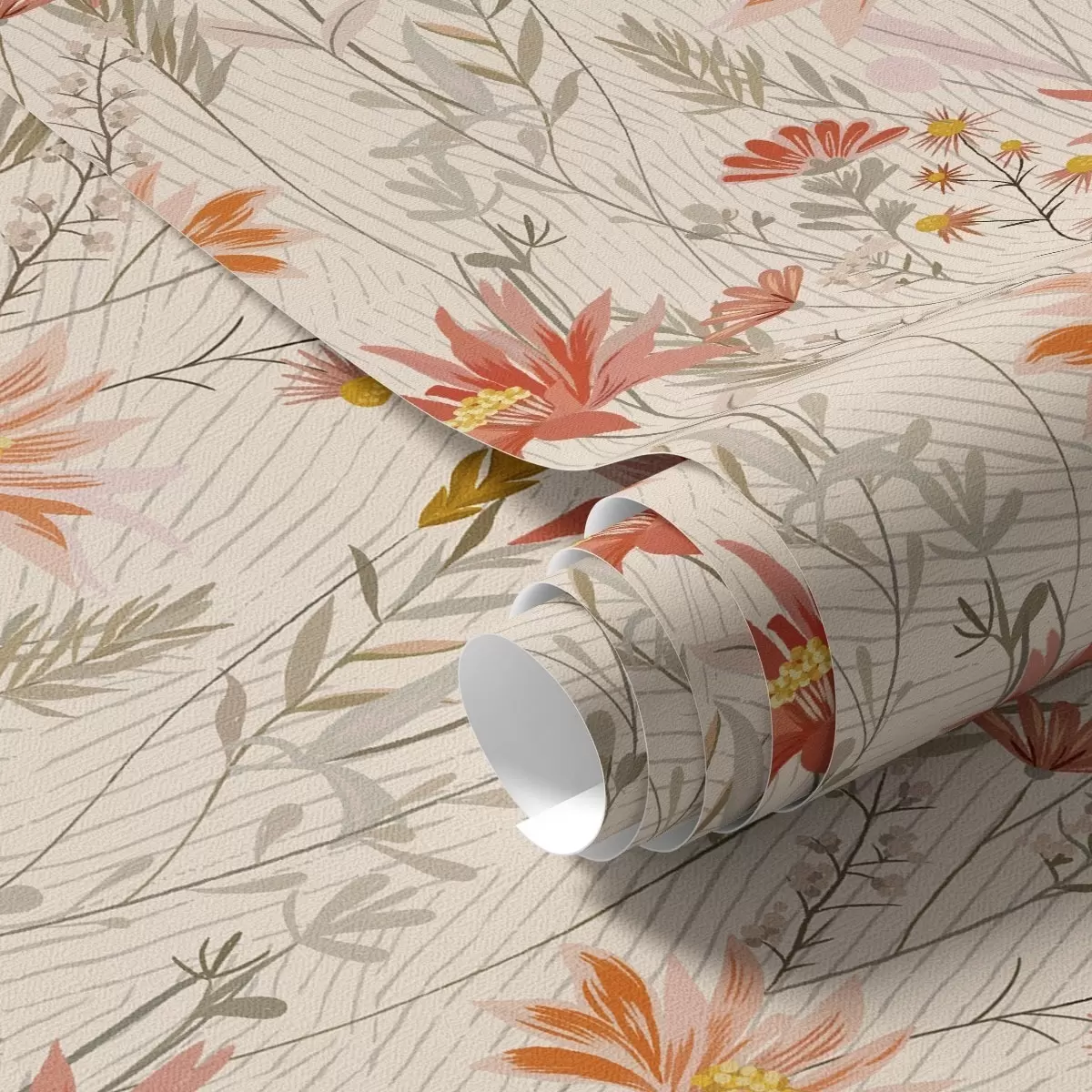 Шпалери Польові квіти в теплих тонах на бежевому тлі Nr. a00751
