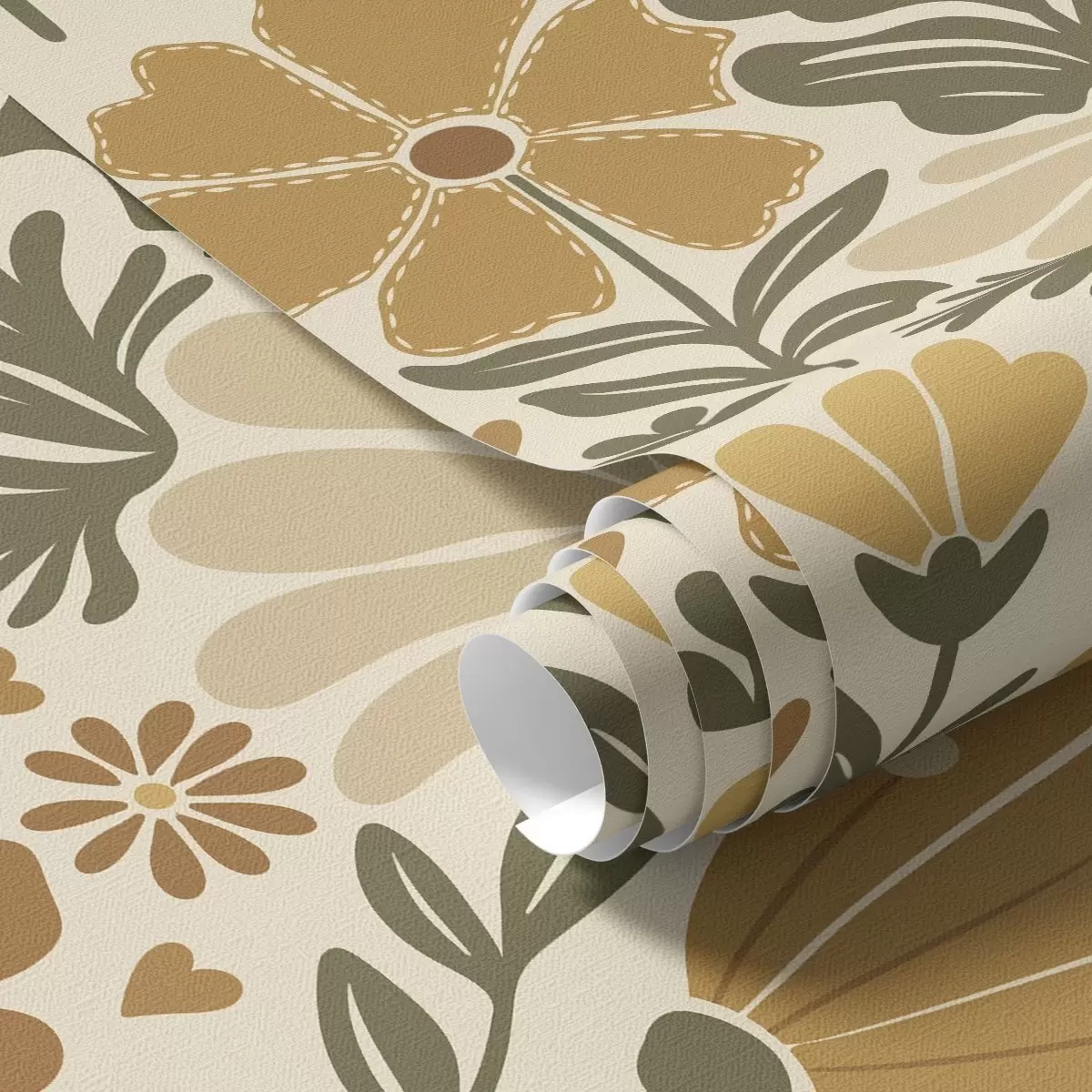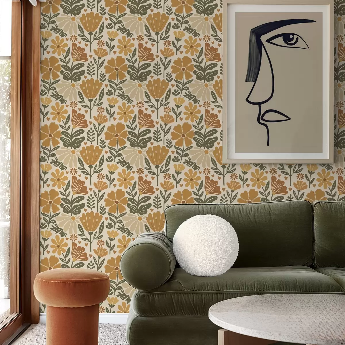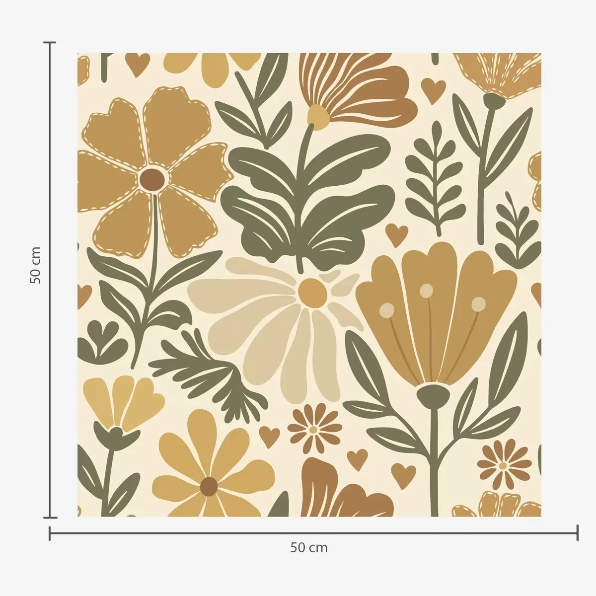 Шпалери Стилізовані квіти в теплих тонах з сердечками Nr. a00752