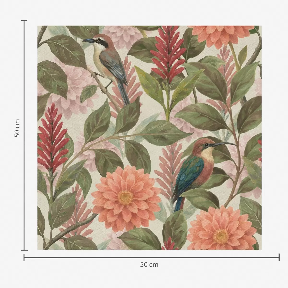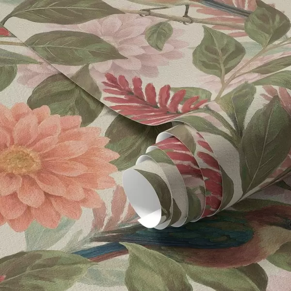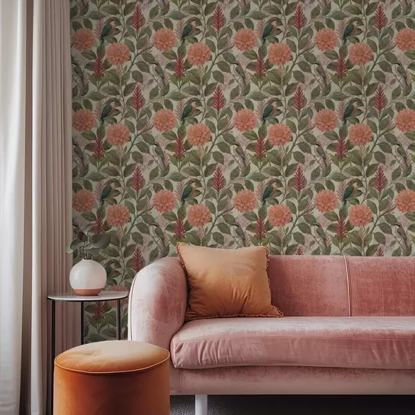 Шпалери Птахи серед квітів і листя в теплих тонах Nr. a00753