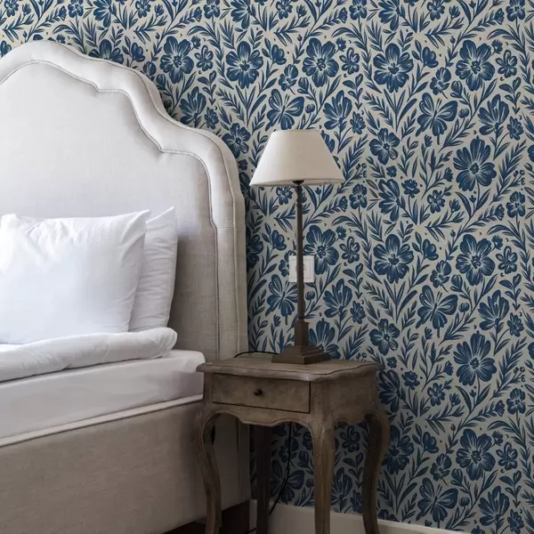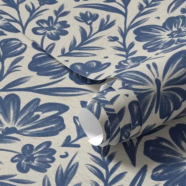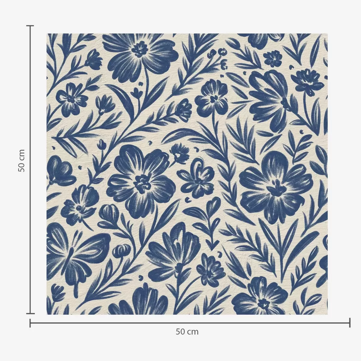 Шпалери Синій квітковий орнамент з метеликами Nr. a00758
