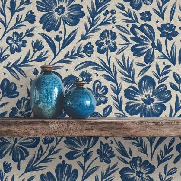 Шпалери Синій квітковий орнамент з метеликами Nr. a00758