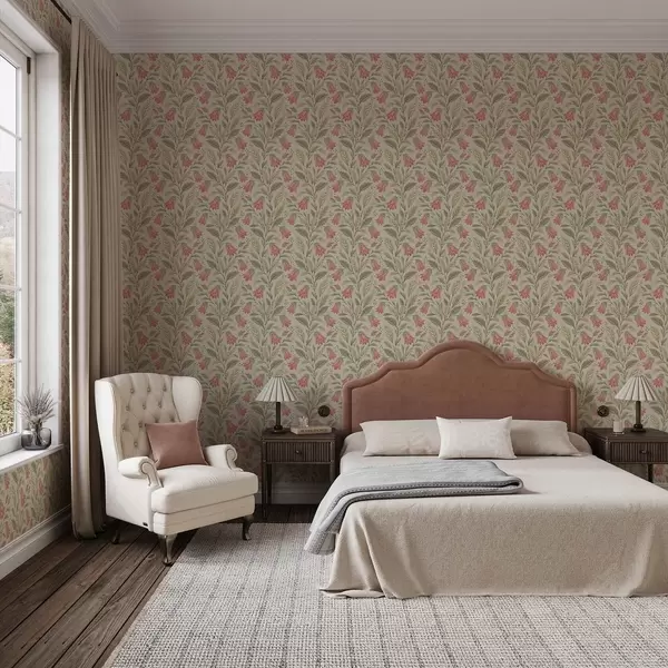 Шпалери Невеликі квіти з дзвіночками в рожево-зеленій гамі Nr. a00760