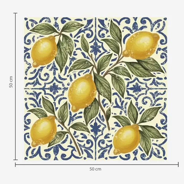 Шпалери Гілки лимона на синьому декоративному тлі Nr. a00763