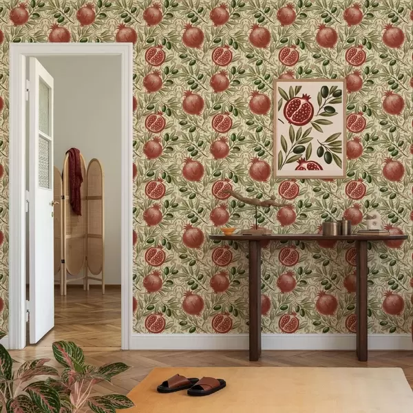 Шпалери Гранатові та оливкові гілки на декоративному тлі Nr. a00764