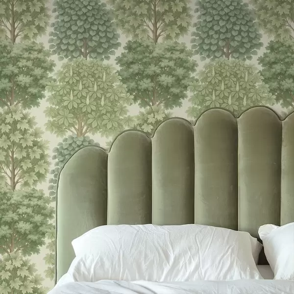 Шпалери Сад дерев у ніжних зелених тонах на світлому тлі Nr. a00775