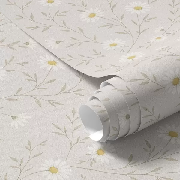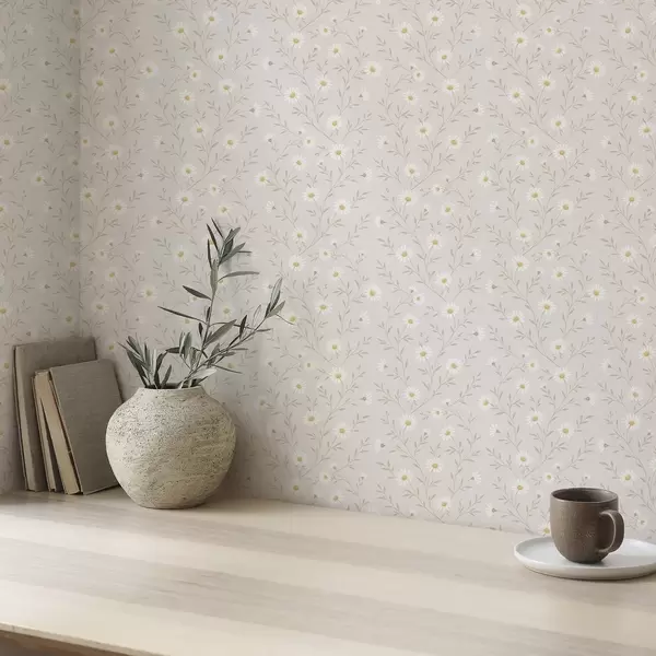 Шпалери Крихітні ромашки на гілочках, теплий бежевий колір Nr. a00777
