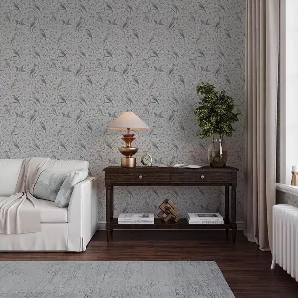 Шпалери Птахи на гілках, сіро-блакитна гама Nr. a00782