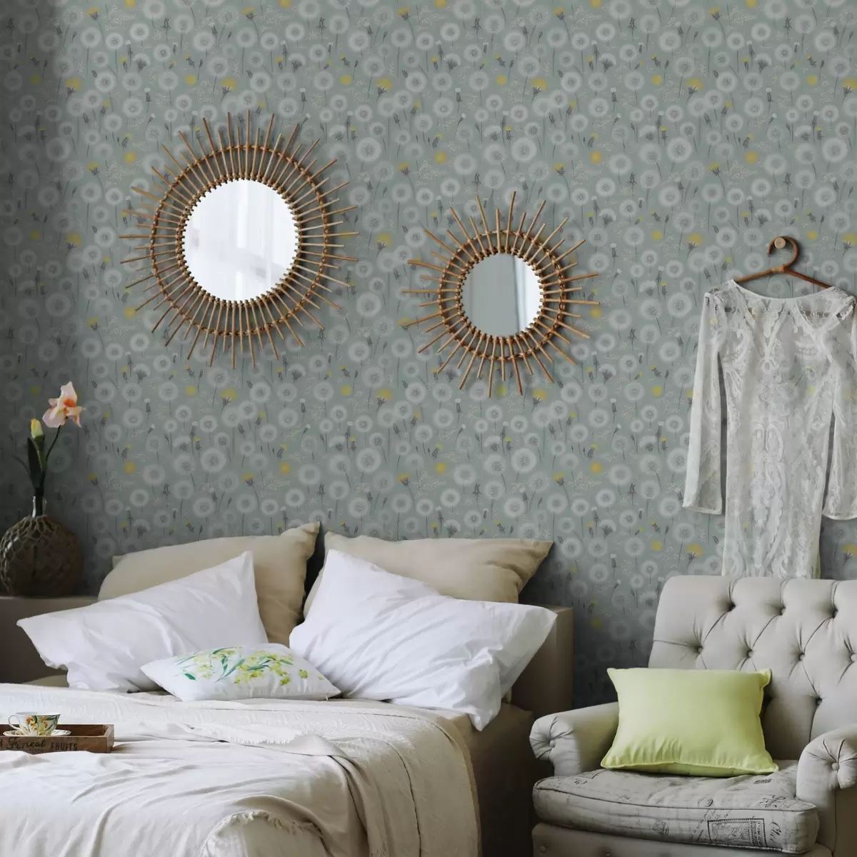Шпалери Пухнасті кульбаби та насіння на м'ятному тлі Nr. a00790