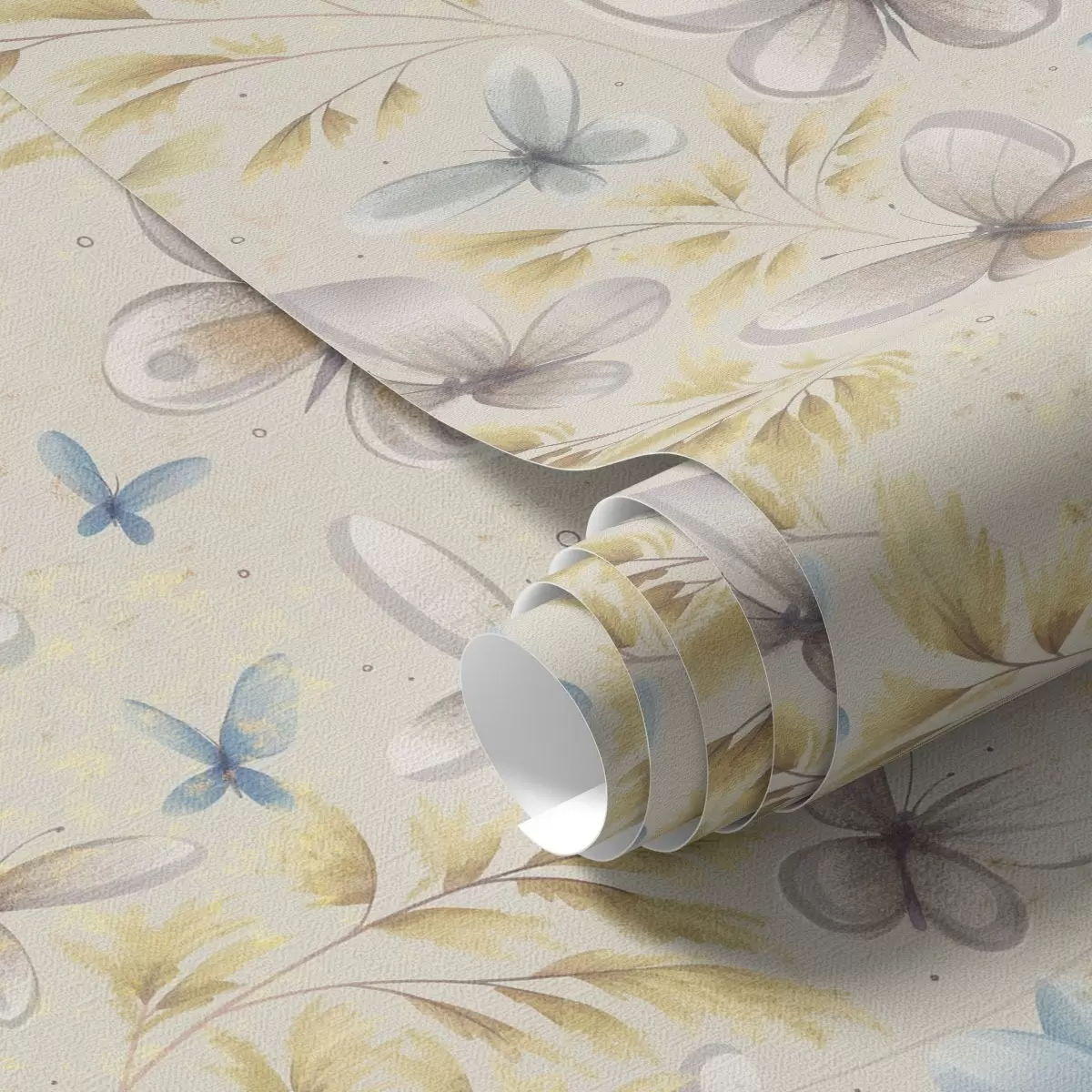 Шпалери Легкі метелики серед жовтих листя на світлому тлі Nr. a00795