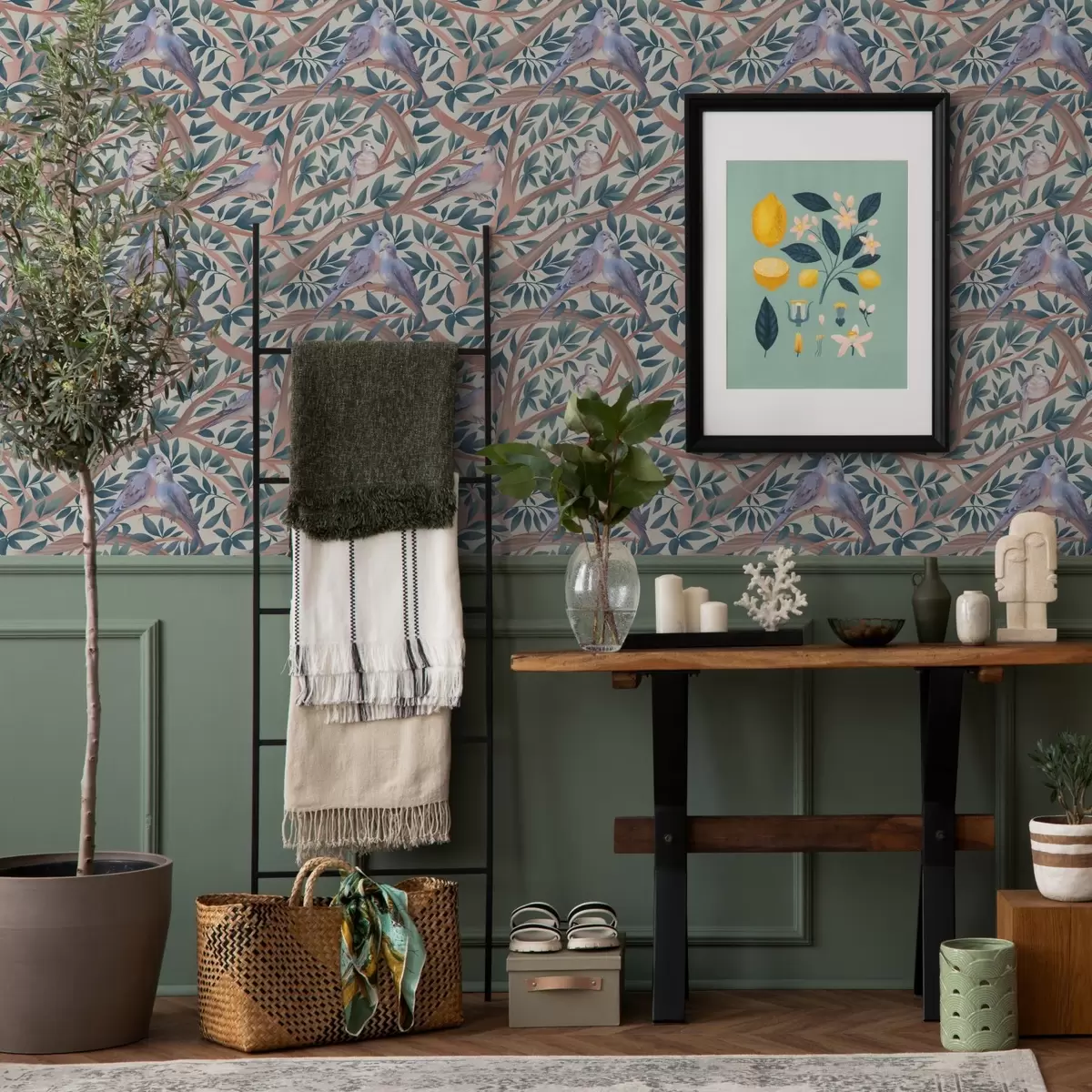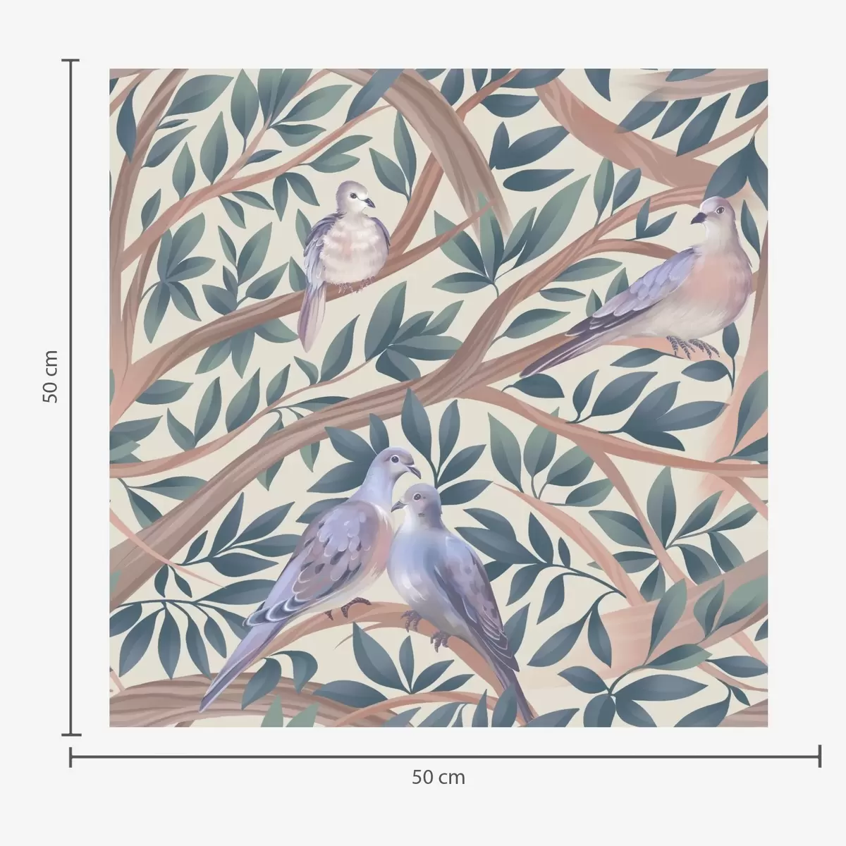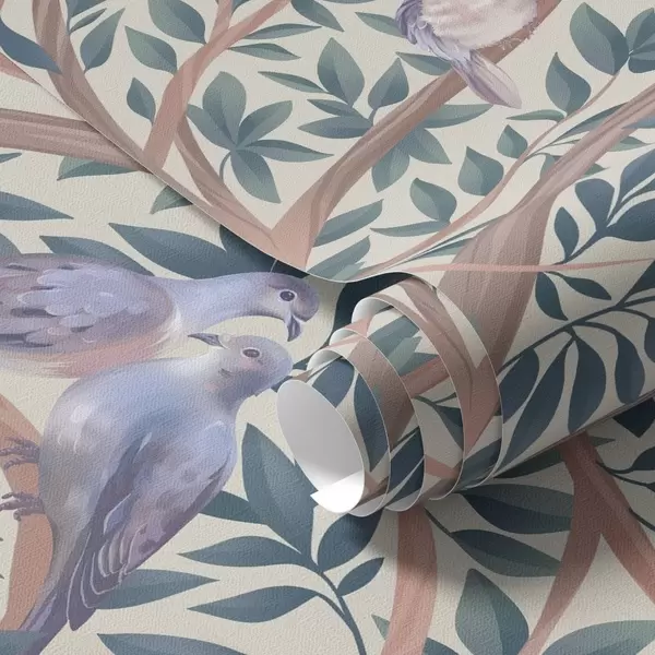 Шпалери Голуби серед гілок і листя в м'якій пастельній палітрі Nr. a00796