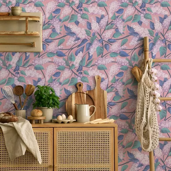 Шпалери Ніжні бузкові квіти на рожевому тлі, весняний настрій Nr. a00797