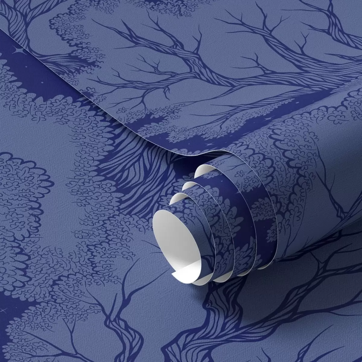 Шпалери Силуети дерев під зоряним небом у відтінках синього кольору Nr. a00798