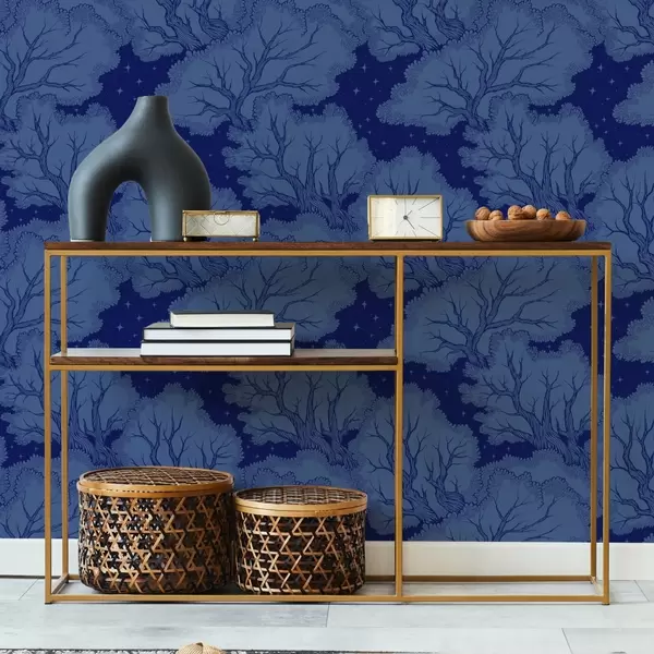 Шпалери Силуети дерев під зоряним небом у відтінках синього кольору Nr. a00798
