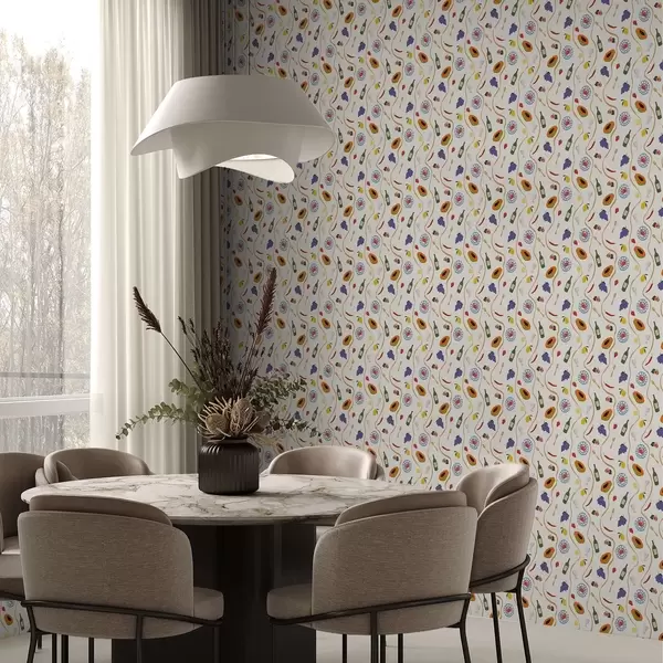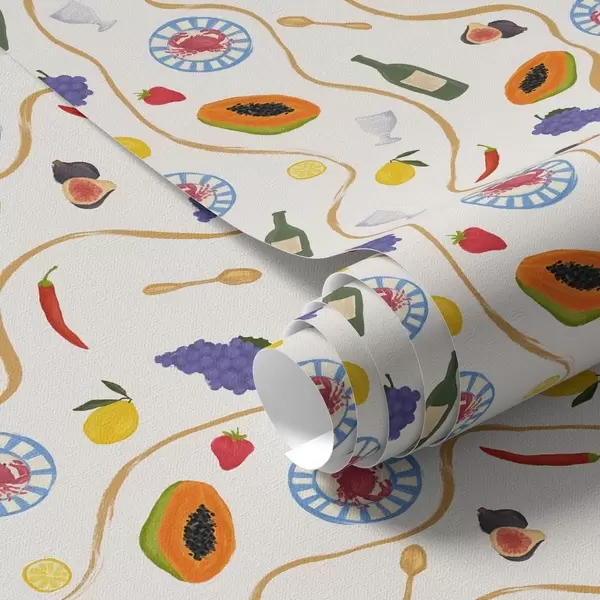 Шпалери Пляшки, папая, лимони та спеції на світлому тлі Nr. a00802