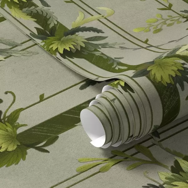 Шпалери Зелене листя у вигляді вертикальних смуг на сірому тлі Nr. a00807v1